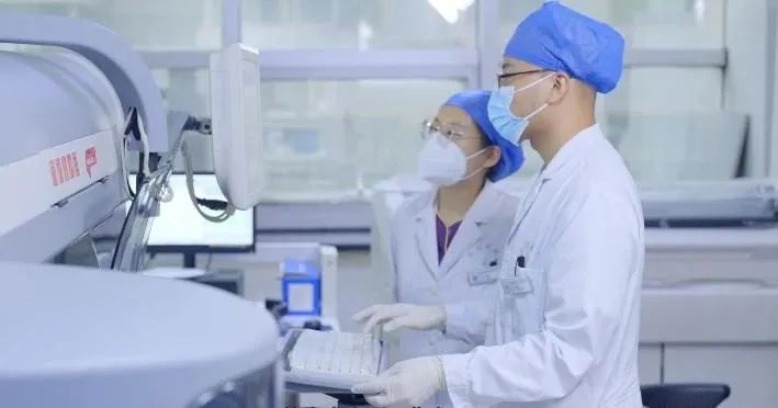 2月8日,在新疆乌鲁木齐友谊医院检验科内,医生通过仪器查看检验结果。任建新摄