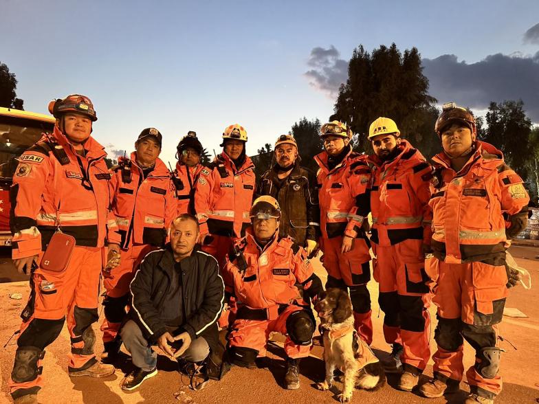 2月11日,公羊救援队队员结束作业任务后,在救援现场合影。公羊救援队供图