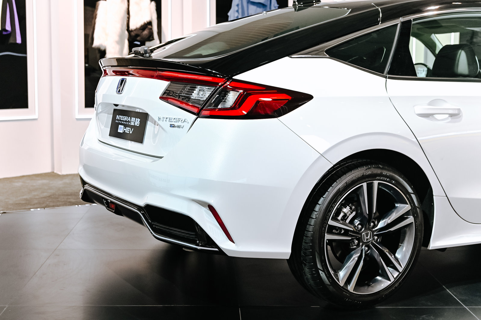 流畅的车顶过度线条配合低重心设计,让型格HATCHBACK展现出轿跑车的姿态。完全不同于三厢版的尾灯设计,贯穿式的风格让车尾的横向视觉效果更加突出。燃油版型格HATCHBACK采用的是双边的尾排设计,而我们体验的e:HEV版则采用了隐藏式排气设计,但依然保留了双边尾排的造型风格。如果燃油版能够设计成中出尾排样式就更帅气了。
