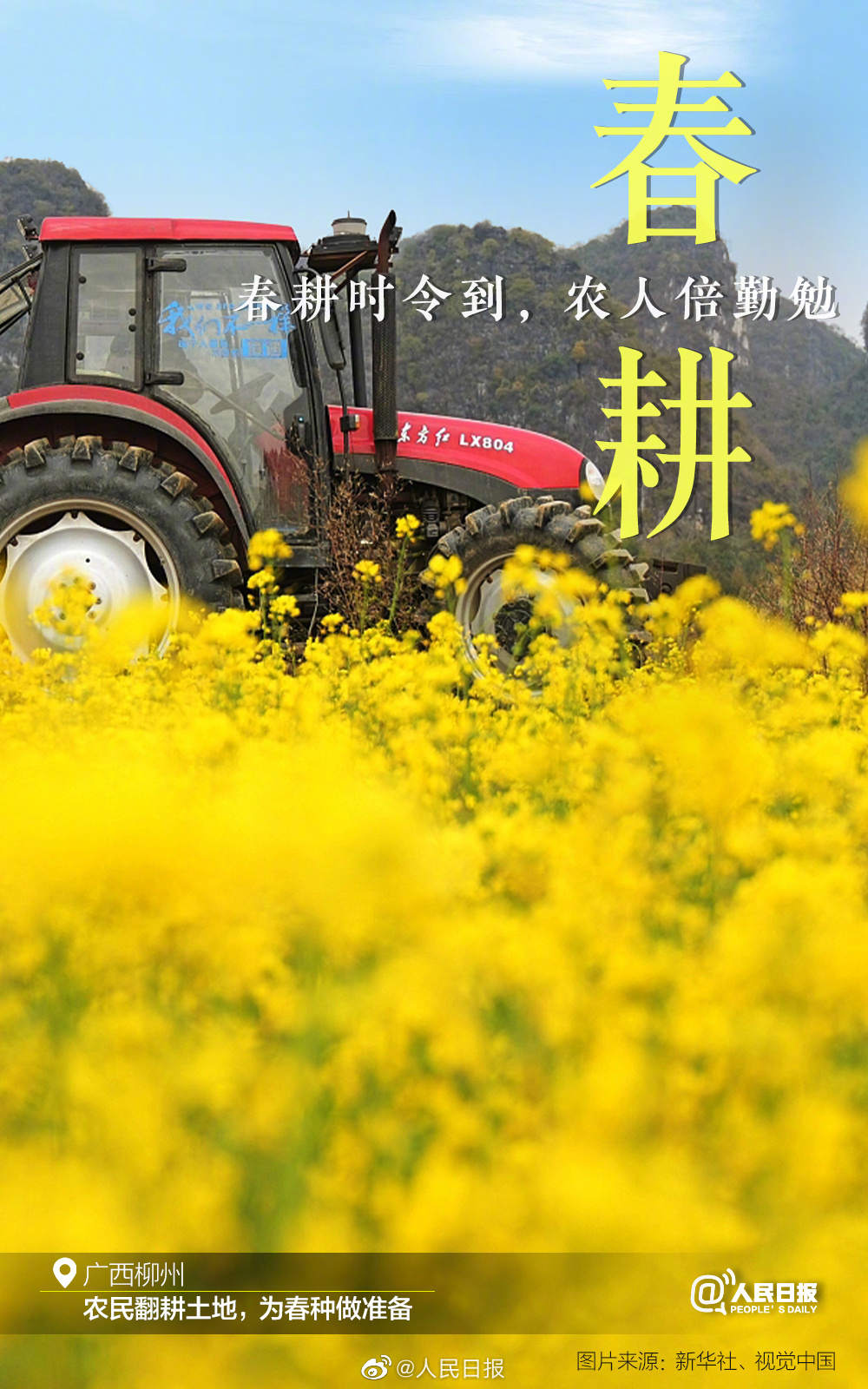 近日,各地陆续进入春耕时节,田间地头一片繁忙热闹的景象。春华秋实,“耕”意味着付出,也孕育着希望和收获。一年之计在于春,在春天播下希望的种子,愿风调雨顺,盼丰收中国!