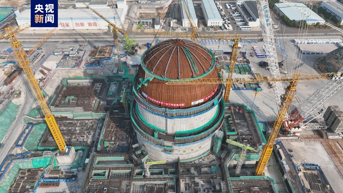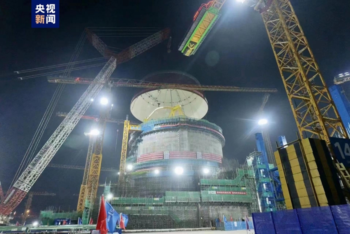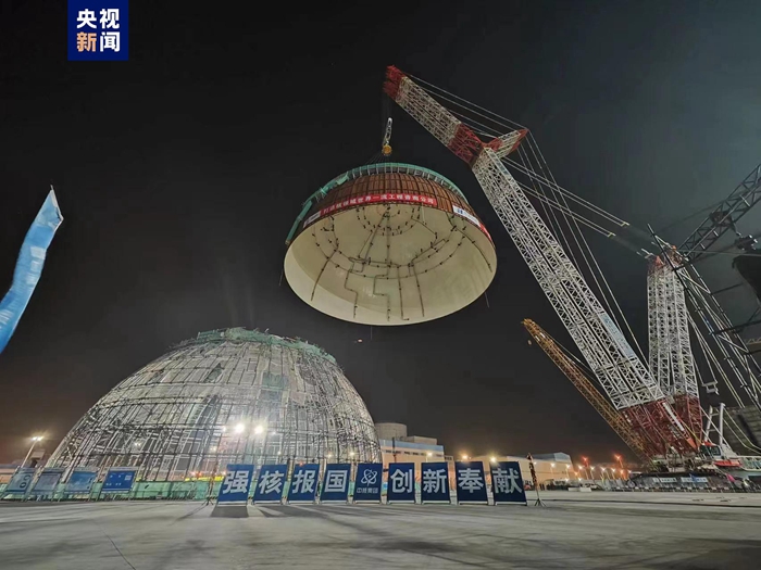2月21日上午,“十四五”时期全国首个开工的“华龙一号”机组——华能海南昌江核电二期工程3号机组内穹顶顺利吊装就位,标志着机组从土建施工阶段全面转入设备安装阶段,为深入推进建安一体化施工和高质量推进工程建设奠定了坚实基础。