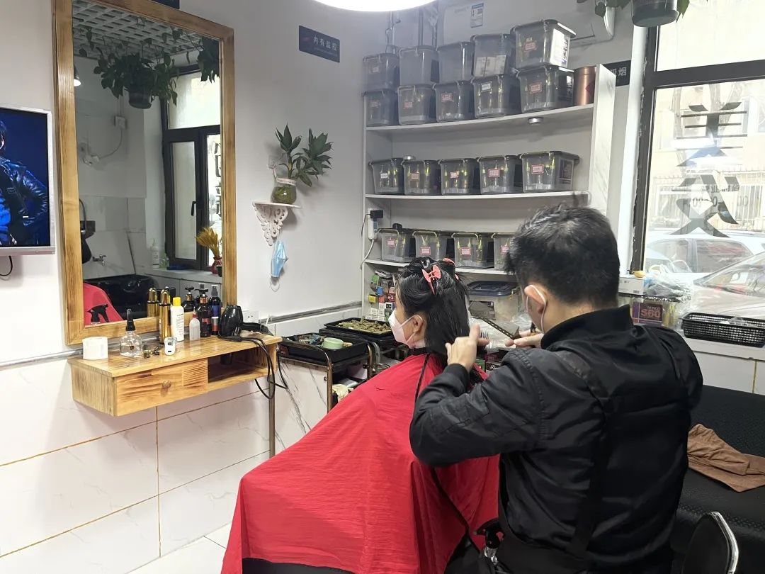 “好的,您先坐着等一会儿,前面还有一位居民排队。”在位于3号服务楼的理发店记者看到,不时有居民前来修剪头发。