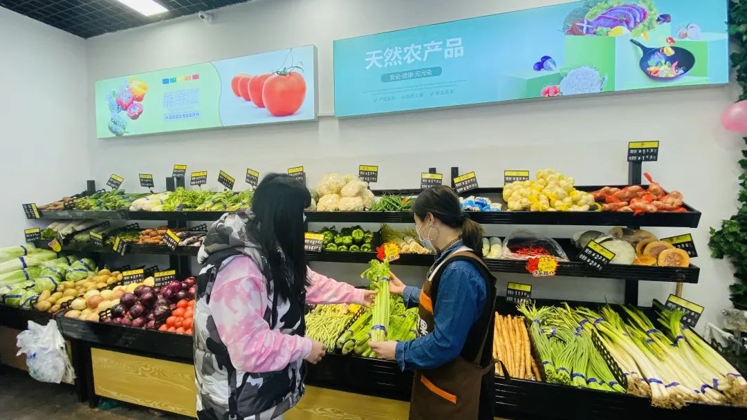 蔬菜、蛋奶、肉类是居民“菜篮子”里的主要产品。走进2号楼的蔬菜店记者看到,新鲜的西红柿、黄瓜、茄子、大白菜等蔬菜映入眼帘,旁边的货架上还摆放着苹果、橙子、香蕉等水果。“下楼,走二三分钟就能到,真是很方便。”居民王女士边挑选蔬菜边对记者说,“相比网购,我还是习惯到店里挑选,这样一目了然,也更放心。”