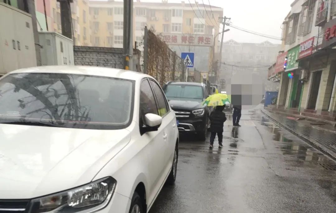 和平家园小区北边道路违停严重。