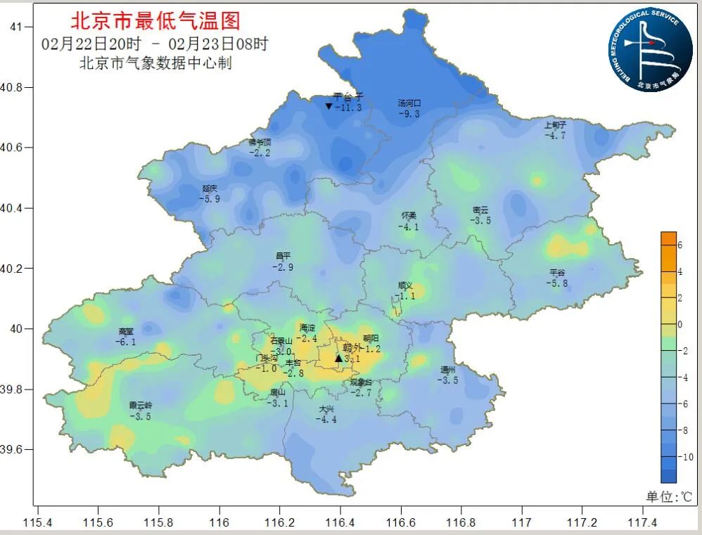 一早晴朗开篇,但早晨东南部有轻雾,南郊观象台最低气温为-2.7℃(4:57),早晚天寒,出行注意防寒保暖。