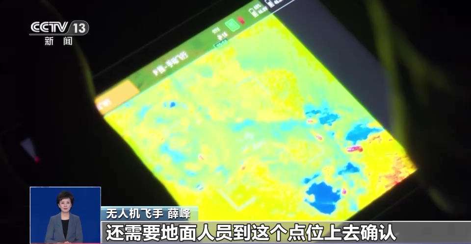 无人机飞手 薛峰:无人机利用热成像筛选一些可疑地方,和周围温度差别比较大的、有明显异常的温度值,还需要地面人员到这个点位上去确认到底是什么情况,然后无人机可以对这个异常点位进行标记给出坐标。