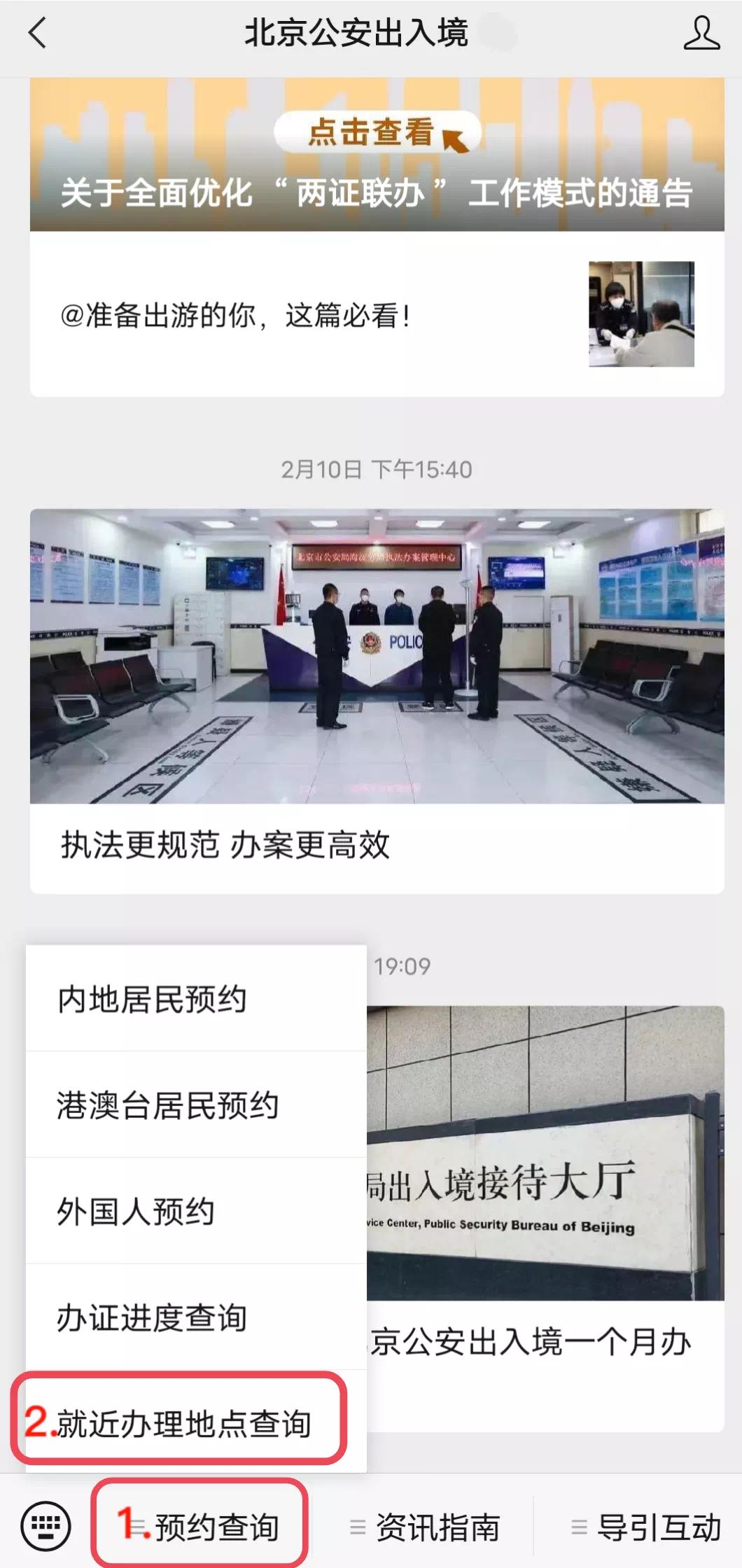 目前,北京市局、各区分局及派出所出入境业务受理地点、办公时间及业务受理范围均可在“北京公安出入境”微信公众号进行查询。