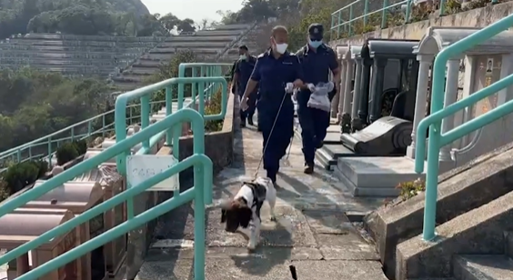 钟雅伦表示,经跟进调查发现,有被捕人士在死者失踪第二天,即本周三(22日)后现身上述坟场,因此有理由相信有人把部分死者残骇弃置坟场内。警方25日出动约百人警力,包括行动部潜水队、搜查队、高空搜查队、无人机队、警犬队、机动部队等,在方圆两三百米距离的坟场山坡至蓄水池位置进行大规模搜索,至傍晚暂无发现。行动将于26日继续,希望寻回死者其余残肢。