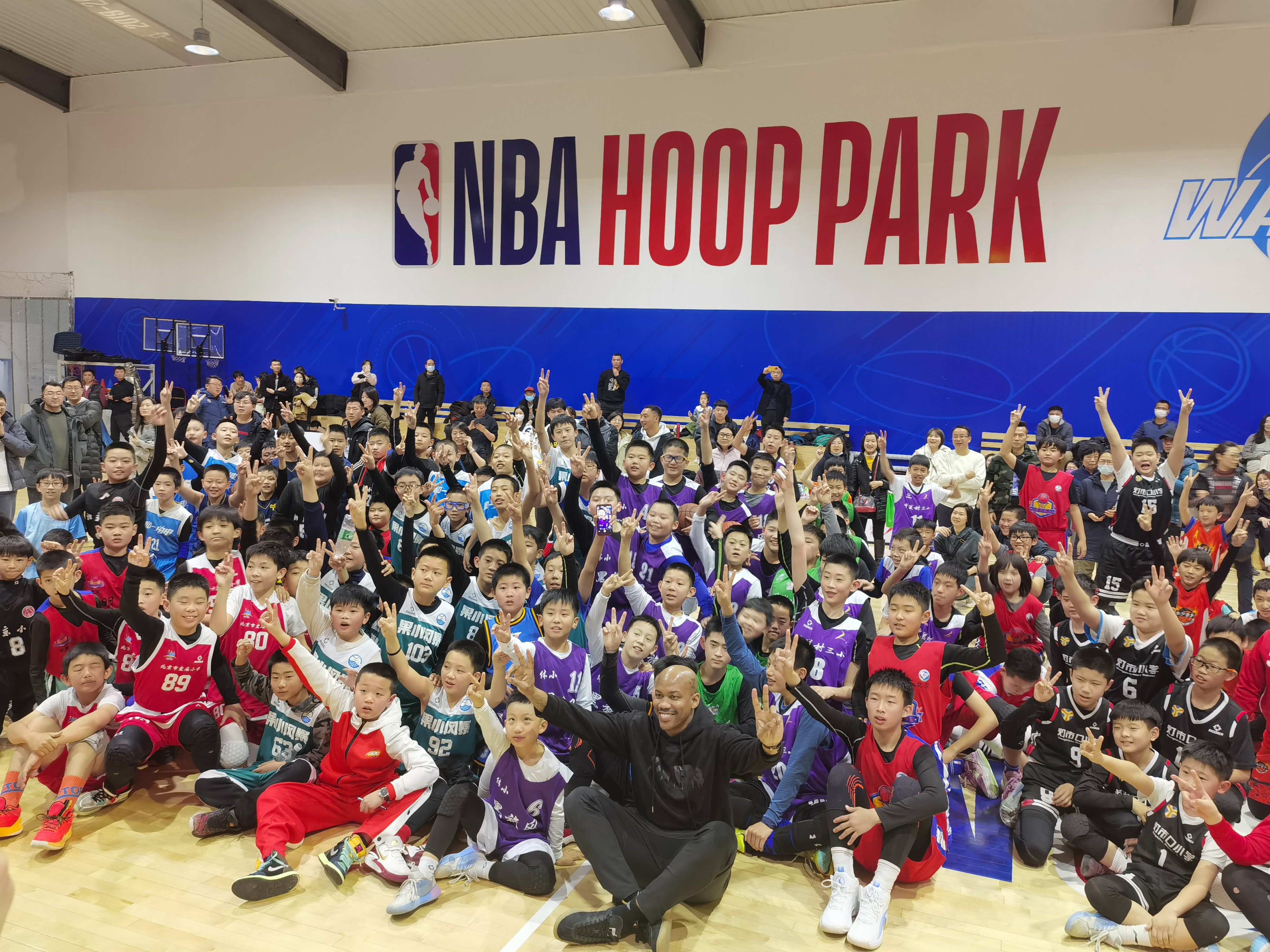 更让孩子们开心的是,美国篮球明星、北控男篮主教练马布里还来到赛场,与小球员们亲切交流,并现场传授“绝活儿”,让孩子们大呼过瘾。