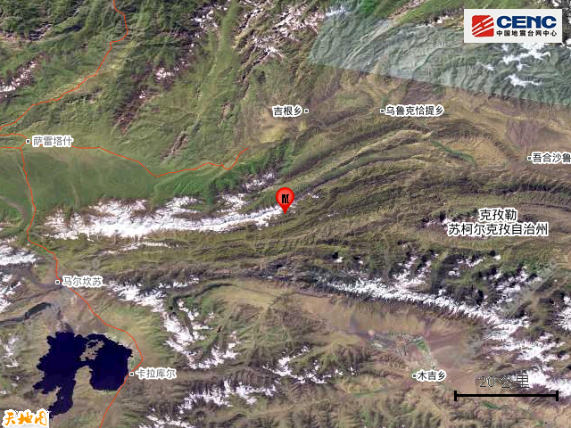 速报参数:据中国地震台网正式测定,2月28日3时36分在新疆克孜勒苏州乌恰县发生3.8级地震,震源深度10公里,震中位于北纬39.50度,东经74.04度。