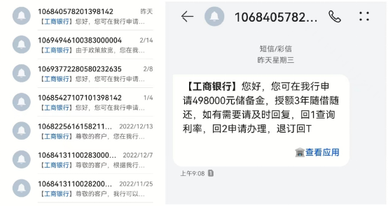 对于这种挂羊头卖狗肉的106短信,如果消费者信以为真,想要进一步了解,那就有可能被不法商家套取个人信息,甚至落入高利贷的陷阱。如果消费者不堪其扰,想要回复“T”退订,则可能受到变本加厉地持续轰炸,原因就在于消费者一旦回复了短信,电脑就会确认这个号码是有人在正常使用,就会标记为活跃用户。更有甚者,不法商家还会把这个电话号码再低价卖给其他同业公司,从那之后就会不断有各种各样的骚扰信息和电话骚扰消费者。
