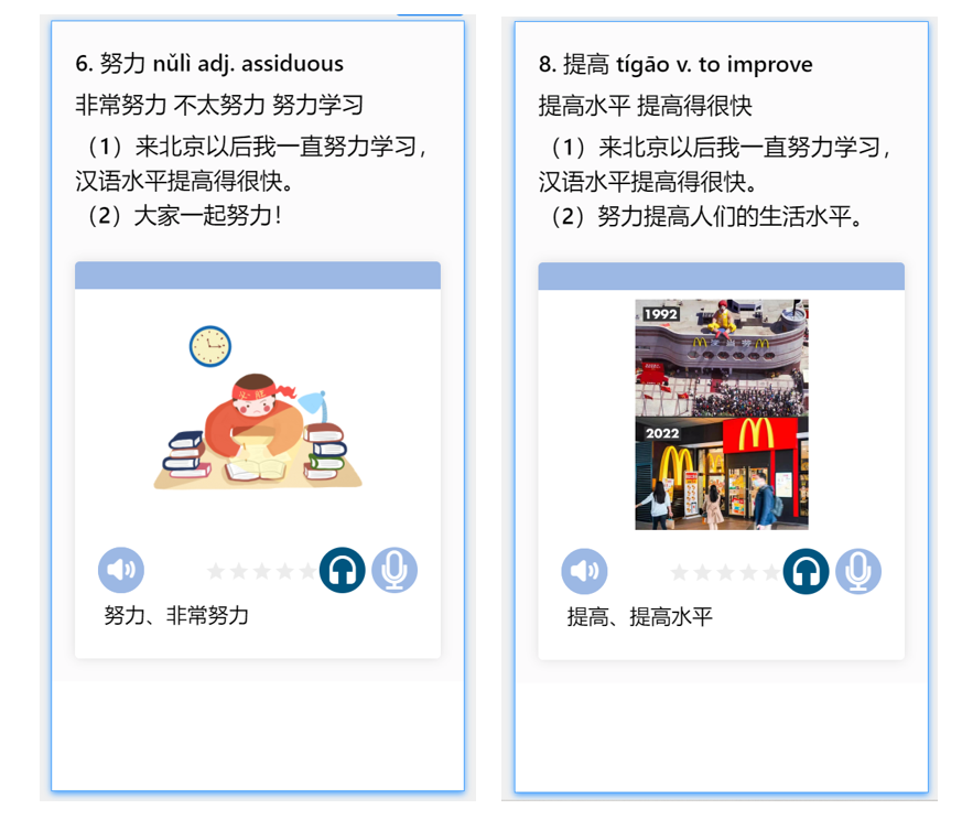北语汉语学院大一新生韩善美来自俄罗斯,她日常习惯使用该系统学习中文。她说:“学中文,读准音有点难。系统提供的听板块很实用。我可以按播放键,反复听,然后对着话筒跟读,系统可以给我打分。这种‘闯关’模式很有趣,也很有效。”