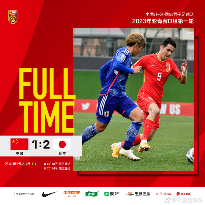 下半场,日本队持续发起攻击,第66分钟和第70分钟,熊田直纪两次攻门得手,日本队2比1完成反超。比赛最后时刻,日本队还曾获得点球机会,但U20国足门将发挥出色,将点球挡出。最终,日本队2比1获胜。
