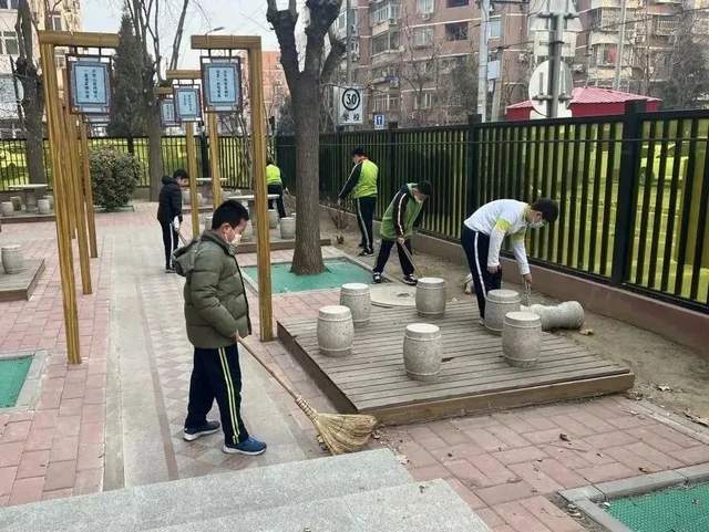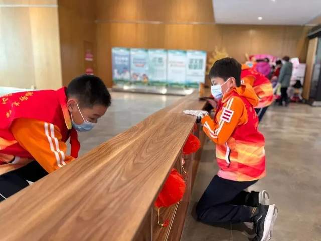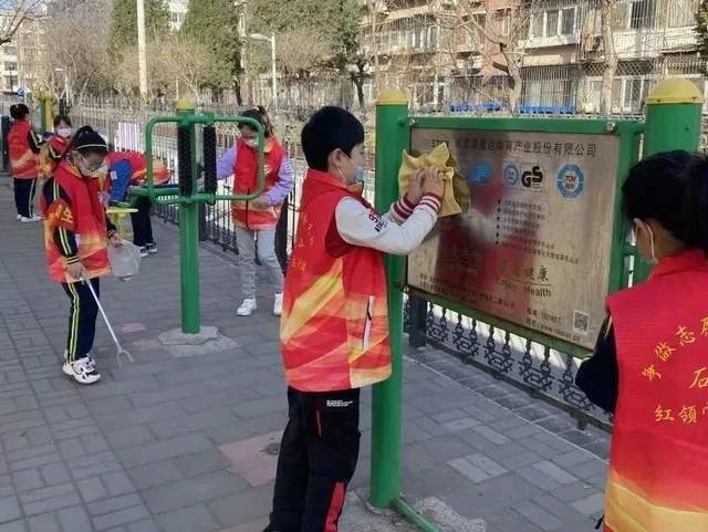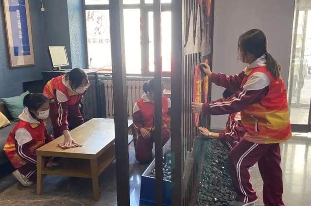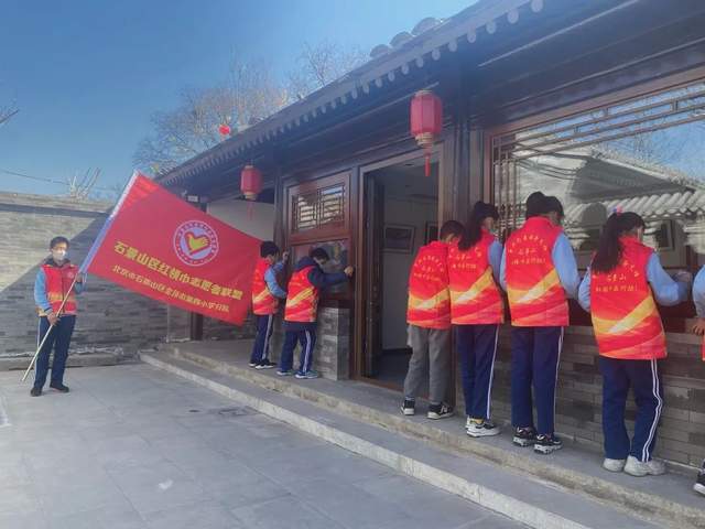 石景山外语实验小学开展以“学习雷锋精神 争当文明先锋”为主题的学雷锋志愿服务教育活动。少先队员们自发组建一支支志愿服务小分队,他们有的将校园、教室和教学楼楼道的座椅、护栏、宣传栏等公共区域擦拭一新,有的走进石景山区文化中心,捡拾垃圾,擦拭桌椅,部分小队员们还在文化馆大厅入口、电梯口、展示栏、电子互动屏旁,引导着参观者市民,传递新时代小先锋的正能量。