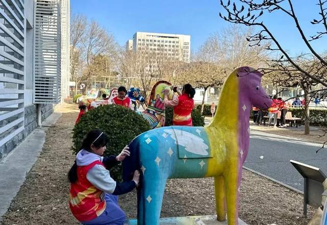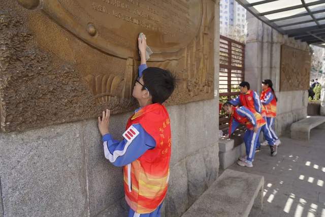3月2日,金顶街第四小学的少先队员们来到模式口·驼铃古道擦拭公共文化设施,少先队员们个个干劲十足,手拿抹布,擦亮京西历史文化保护区。