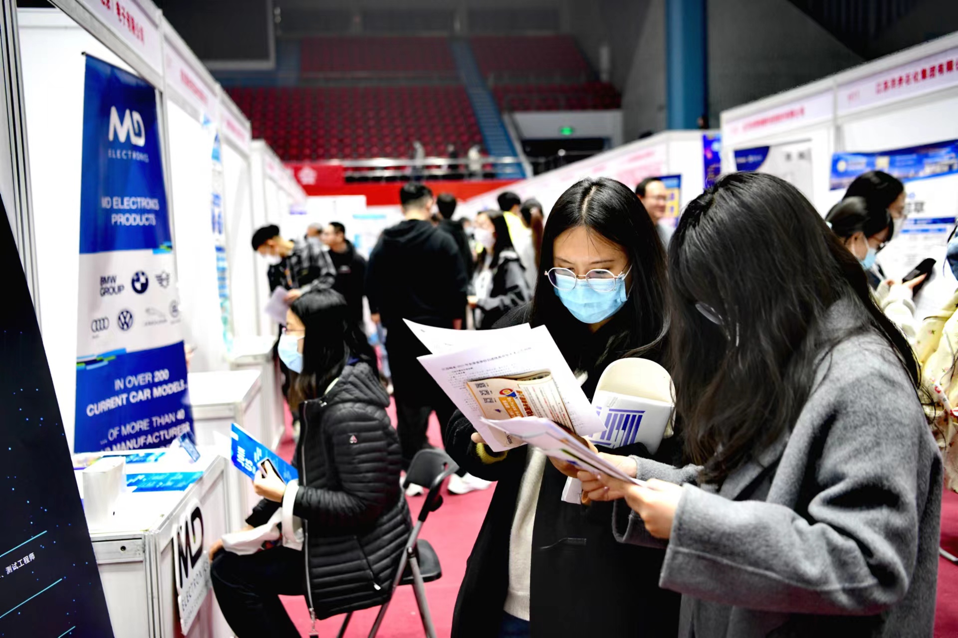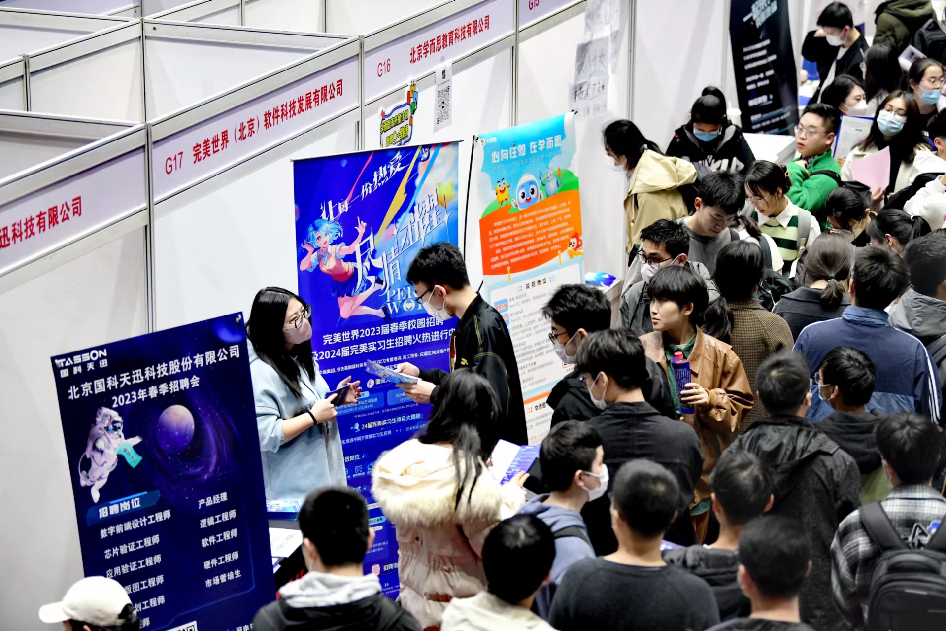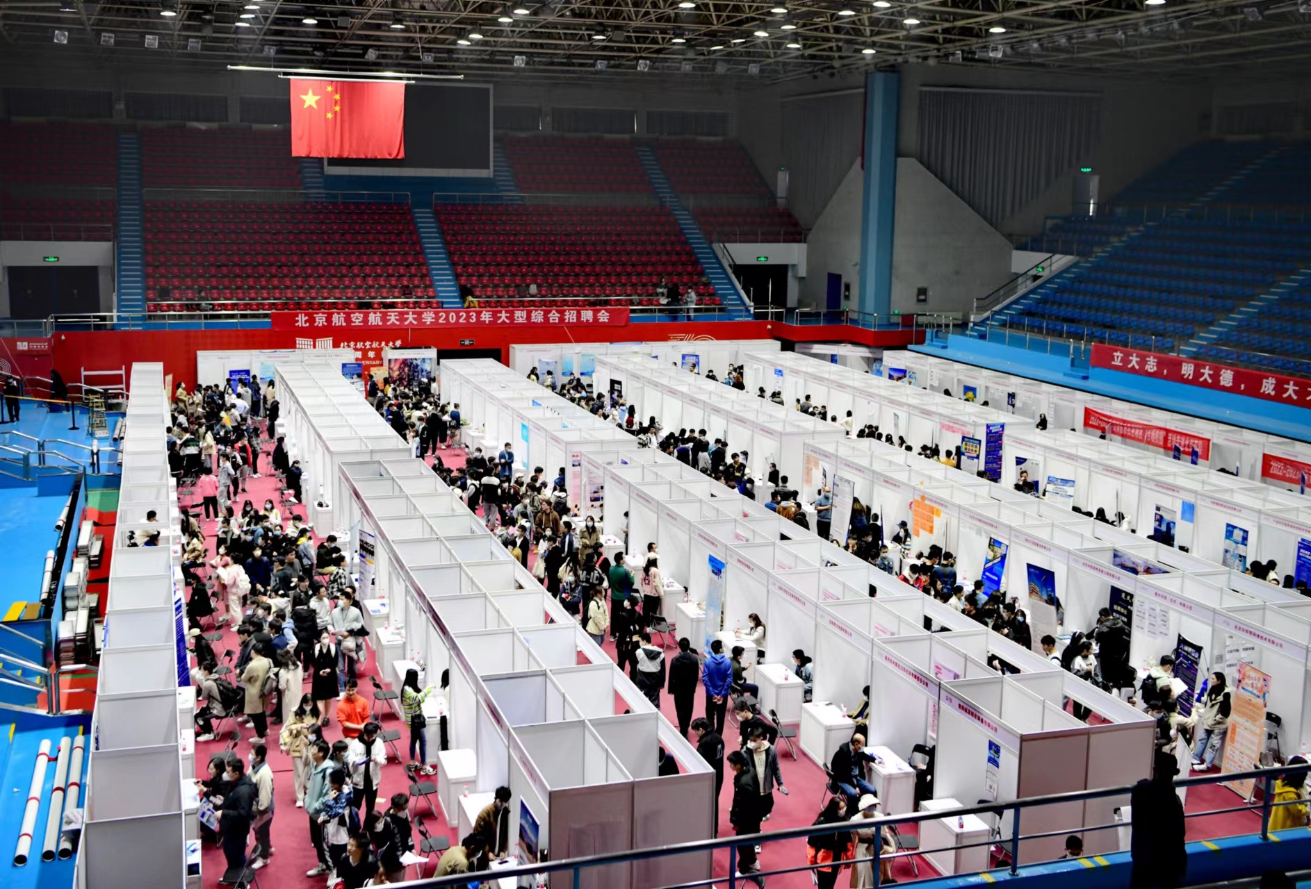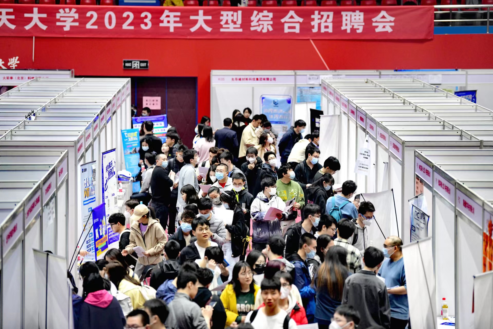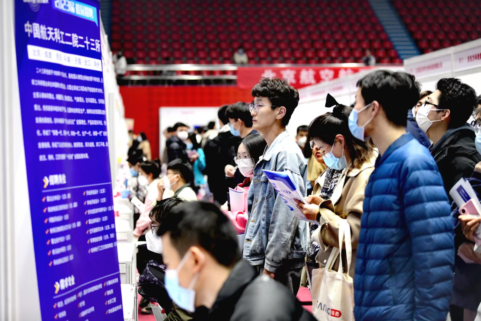 7日14时,北京航空航天大学首场线下综合双选会开启,200余家用人单位提供超1万个就业和实习岗位。大飞机班机械工程专业研二学生宋昕宇刚下课,就抱着书冲进了双选会现场。他说:“虽说明年才毕业,但提前了解总没错。我打算找找实习机会。”