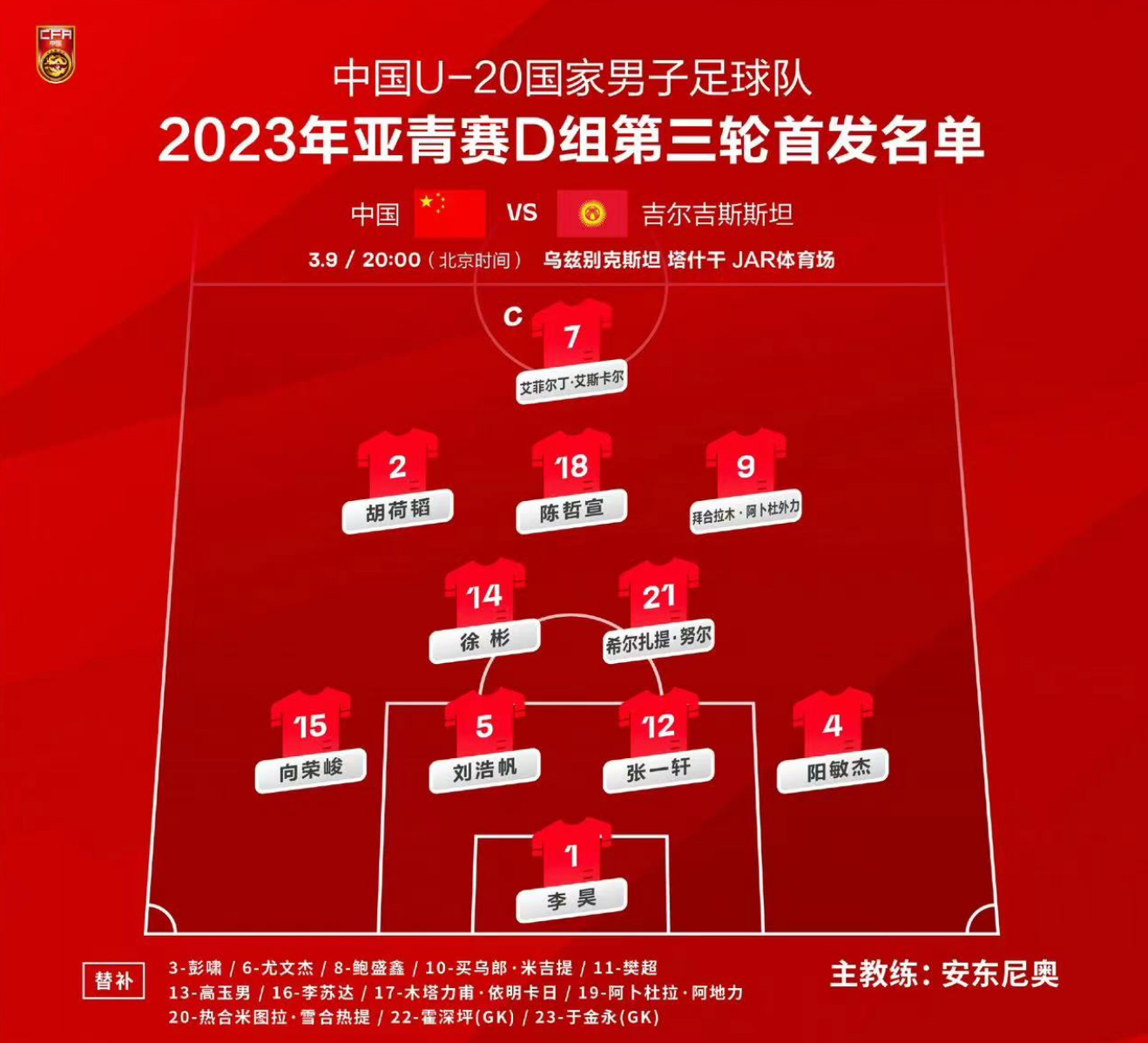 能够在首战1比2输给日本队,次战一旦输球就将提前出局的情况下顶住压力,2比0战胜上届赛事的冠军球队沙特队,U20国足表现出了足够的韧性和魄力。本场比赛,主帅安东尼奥再次派出与沙特队一战同样的首发阵型,全力争胜的态度非常明确。