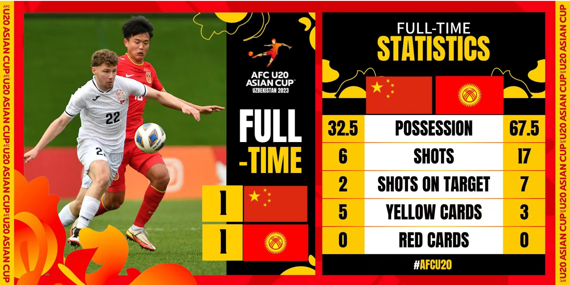 从比赛进程看,吉尔吉斯斯坦队的防守确实给U20国足带来了一定的麻烦。但凭借足够的耐心,U20国足终于在第58分钟收获进球,艾菲尔丁横传,对方球员送出乌龙大礼,U20国足1比0取得领先。但随着体能下降,U20国足在下半场最后时刻出现失误,被对手扳回一球,最终1比1收获平局。不过,因为在另一场比赛中日本队以2比1击败沙特队,U20国足依然以小组第二的成绩晋级8强。
