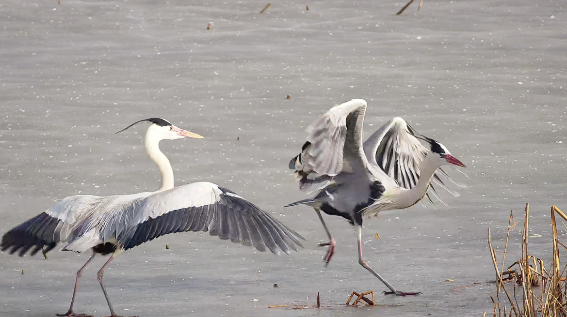 在公园北侧的苍鹭繁殖区,红外监测还监测到300余只苍鹭翩跹起舞。苍鹭春季迁来繁殖地的时间多在3月末至4月初,10月初至10月末迁离繁殖地。今年,受回暖天气影响,大批苍鹭已经飞回野鸭湖,眼下正值苍鹭繁殖期,苍鹭们在暖阳下求偶筑巢,哺育新生命。