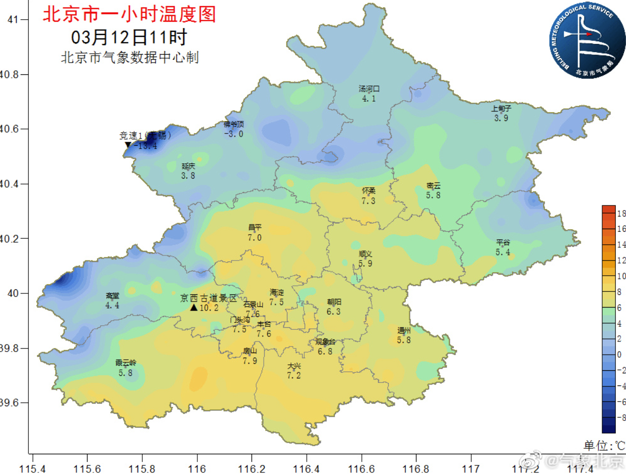 11时30分,北京南郊观象台气温7.8℃,城区气温在6~8℃之间,目前本市正处于大风蓝色预警和寒潮蓝色预警中,今天白天北风较大,阵风可达七级左右,气温也较前期下降明显,风寒效应显著,外出注意防风保暖,防范高空坠物,并注意用火用电安全。