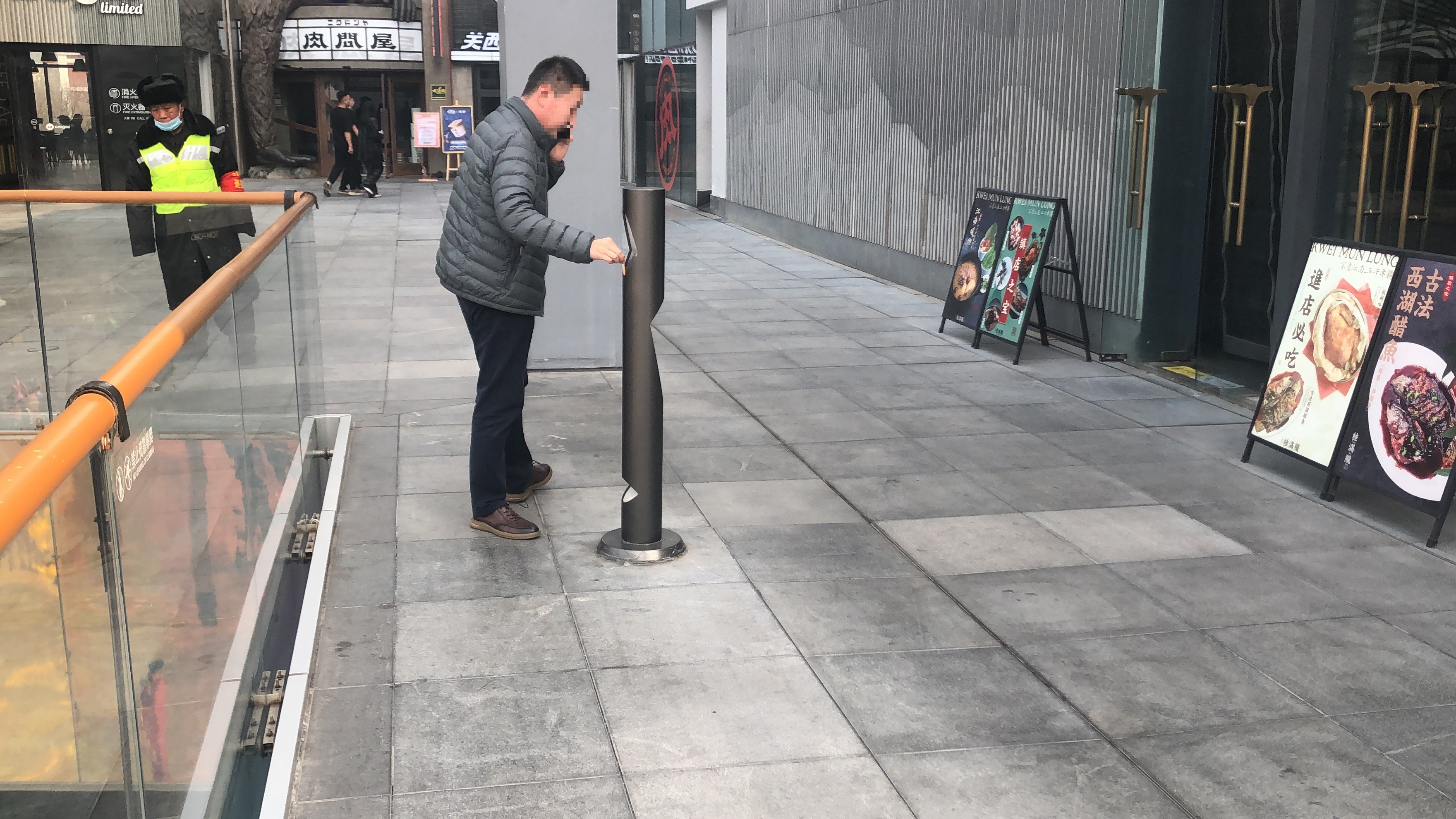 三里屯太古里恢复了往日的烟火气,各家餐馆生意红火。有顾客吃完饭走出店门,来到露天走廊吸烟。熄灭了香烟,顾客想把烟头投进“烟灰柱”的时候,却发现盖子怎么也打不开。好一通琢磨才明白,眼前这个半人来高的圆柱形物体根本不是扔烟头的。可几乎所有的白色盖子上,都布满了黑黑的烟灰和烟油。