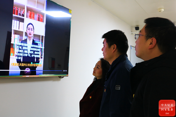 湖北省宜昌市纪委监委在推进廉洁文化建设过程中,积极创作各类易于传播、形式活泼的作品,倡导廉洁理念,营造廉洁风尚。图为宜昌市乡村振兴局干部正在观看该市纪委监委创作的廉政课堂小视频。(湖北省宜昌市纪委监委 刘建平 摄)