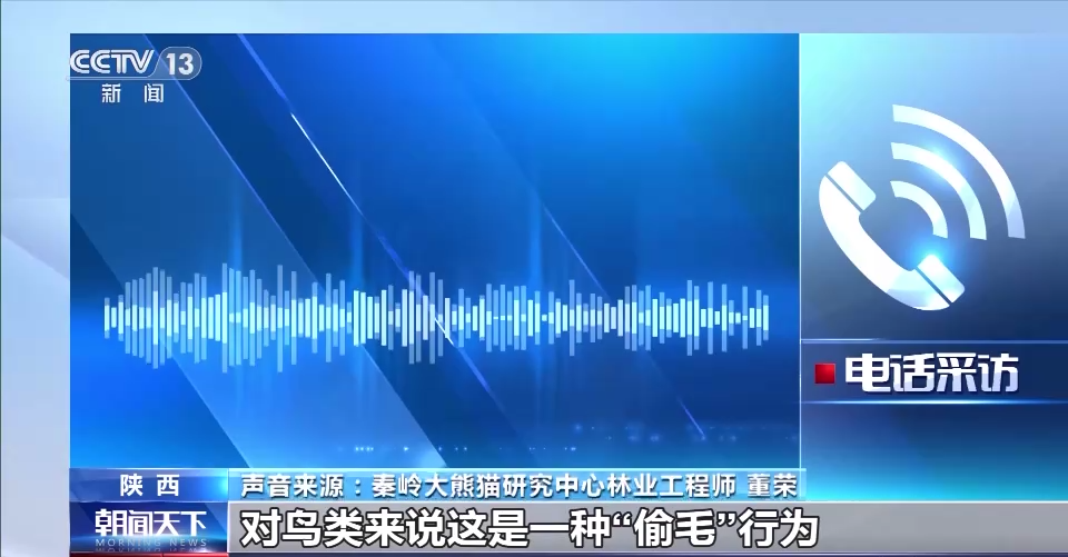 秦岭大熊猫研究中心林业工程师 董荣:对鸟类来说这是一种“偷毛”行为,像喜鹊它繁殖比较早,特别在每年3月初就开始繁殖。寒带或温带在3月初温度还是比较低的。在巢里面会用一些内垫物作为一些巢材,比如说一些苔藓、地衣,甚至一些兽类的毛,对它巢的保温性能好一点。对大熊猫基本上是没有什么影响的,这也是两种物种的一种相处方式吧。