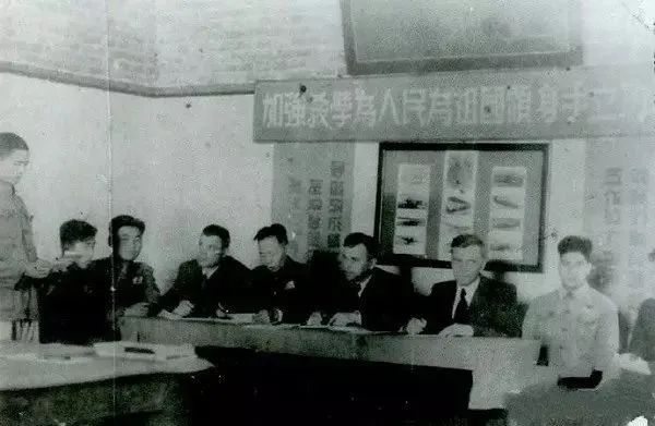 图:1950年6月 空军第三驱逐航校机械速成班学员毕业考试 左三为校长方子翼