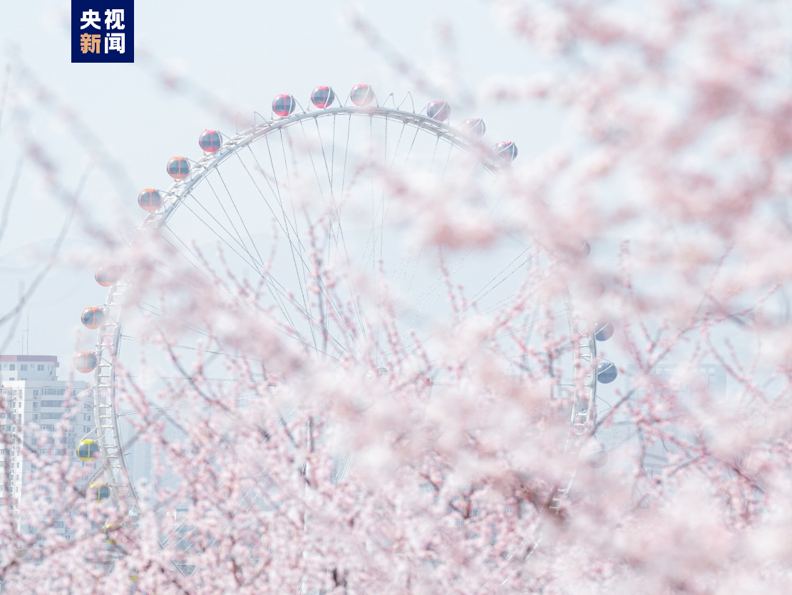 在石景山老山城市休闲公园里,惊蛰过后野桃树便披上粉色的衣衫,盛开的桃花掩映着远处的摩天轮。