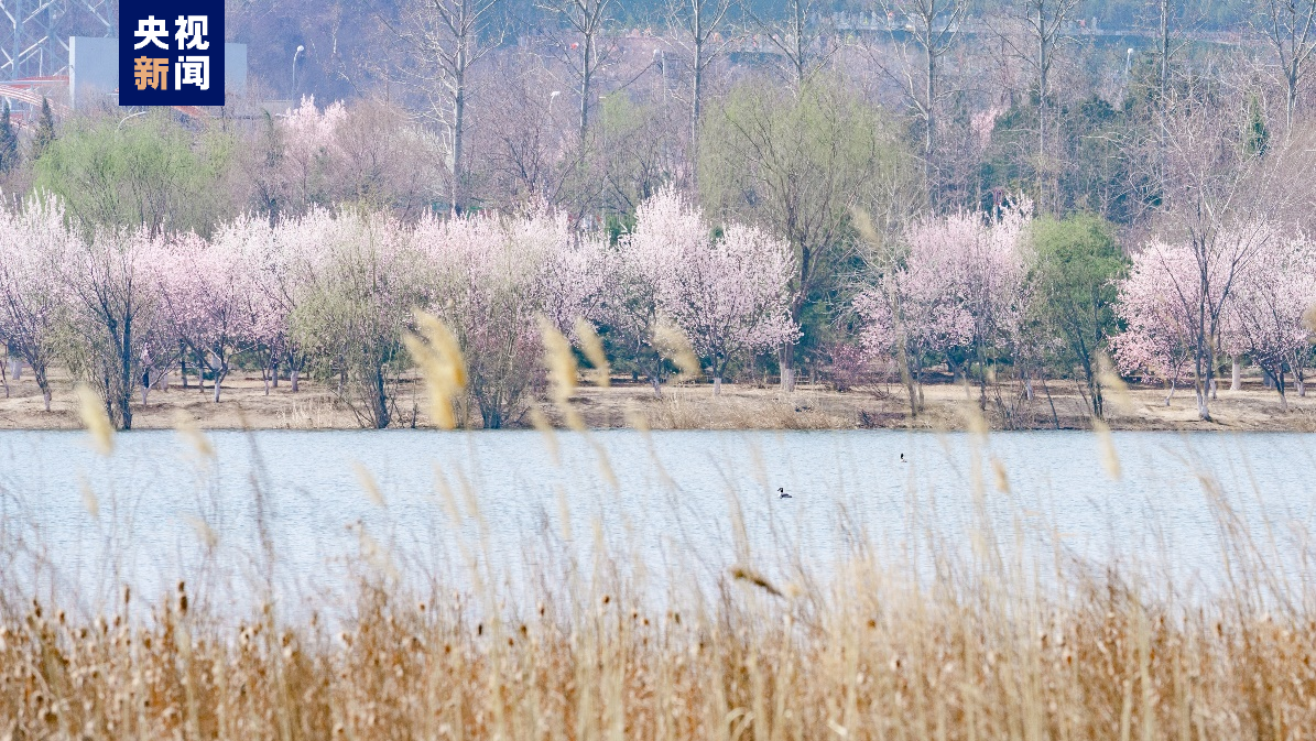 北京冬奥公园内也是一片生机。开在莲石湖畔的桃花与芦苇隔岸相望,风吹过时,水波粼粼,花雨纷飞,春天沿着湖水流动起来。