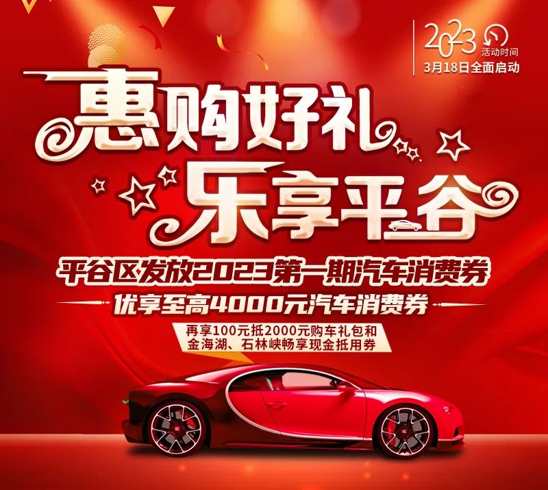 3月18日,平谷区启动发放2023年第一期汽车消费券,消费者可进入“消费地图-平谷区”微信小程序平台领取汽车消费券,并在参与活动的汽车4S店购车时使用。