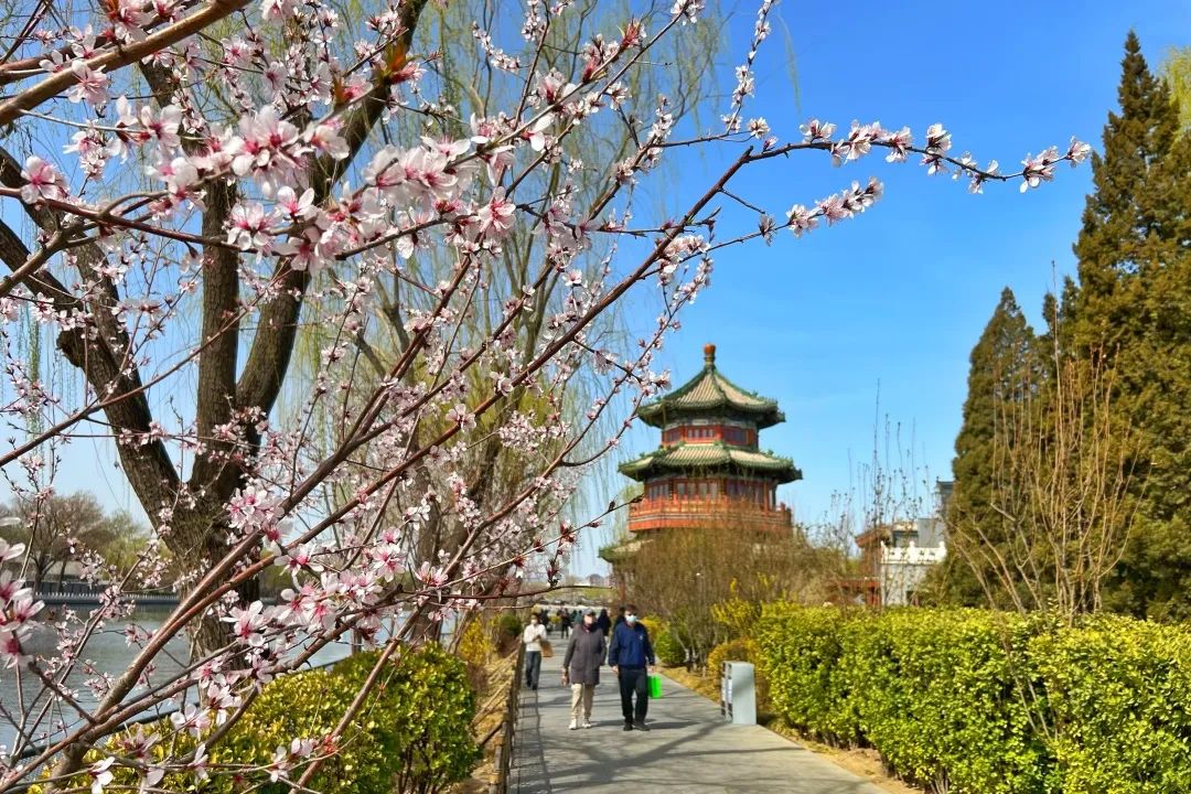 三月春日熙熙,随着气温的升高,西城街边和公园里的迎春花、山桃花、玉兰花次第开放。