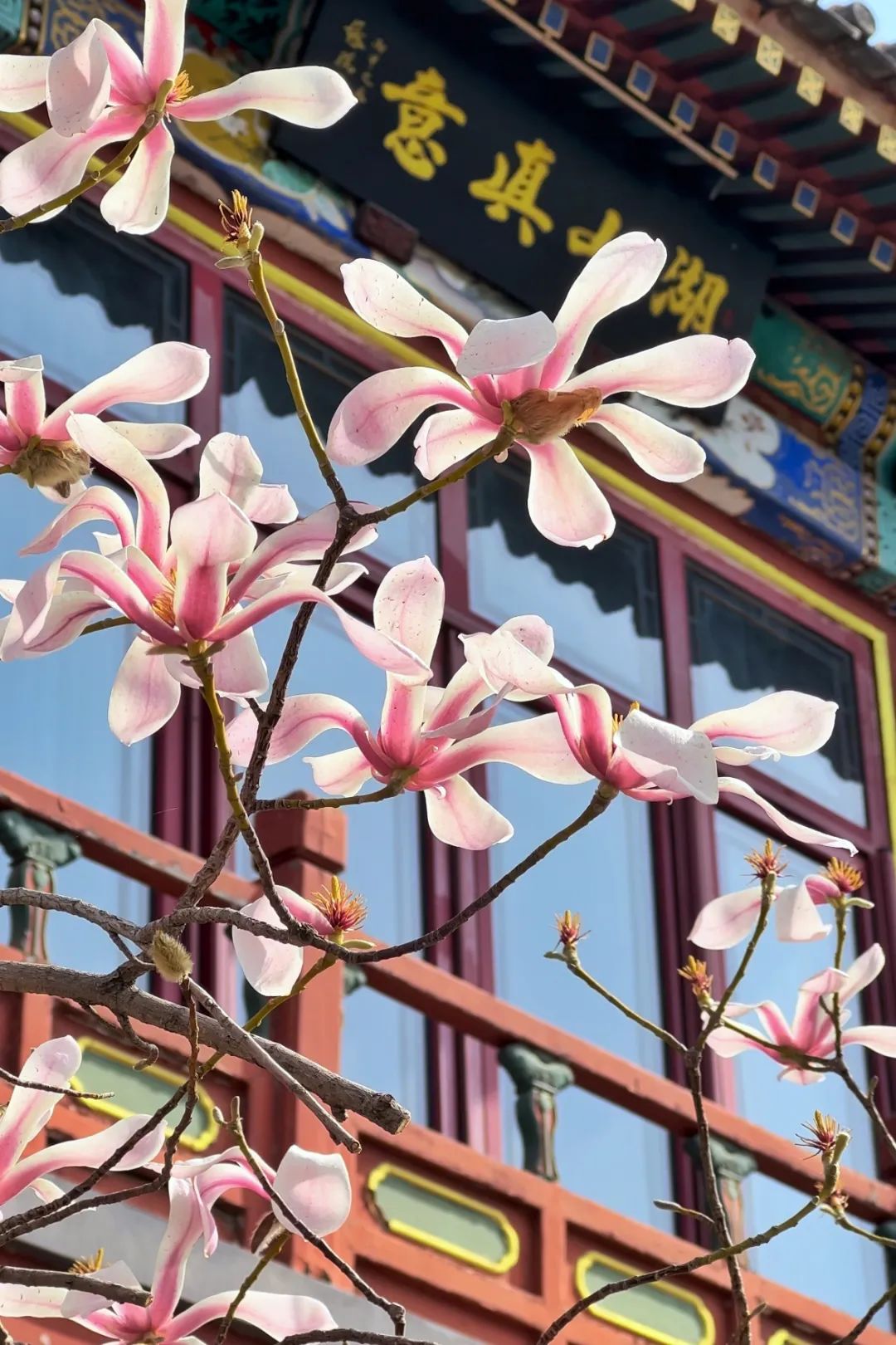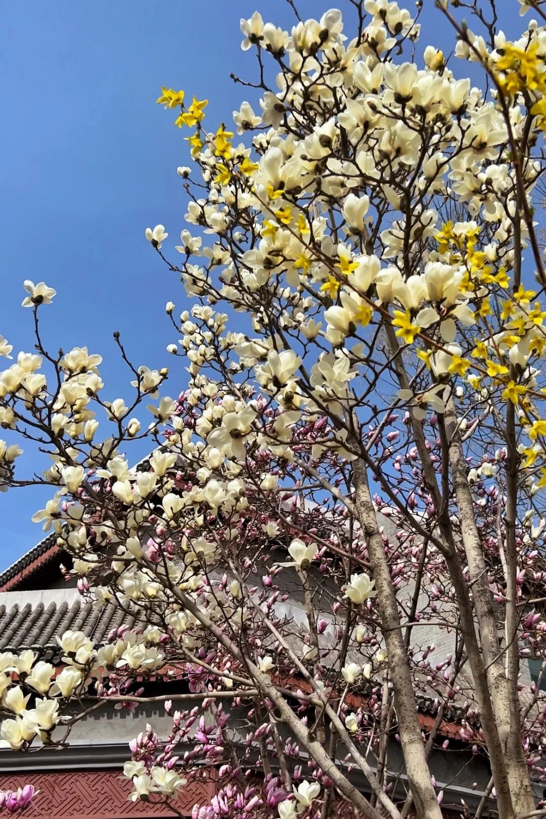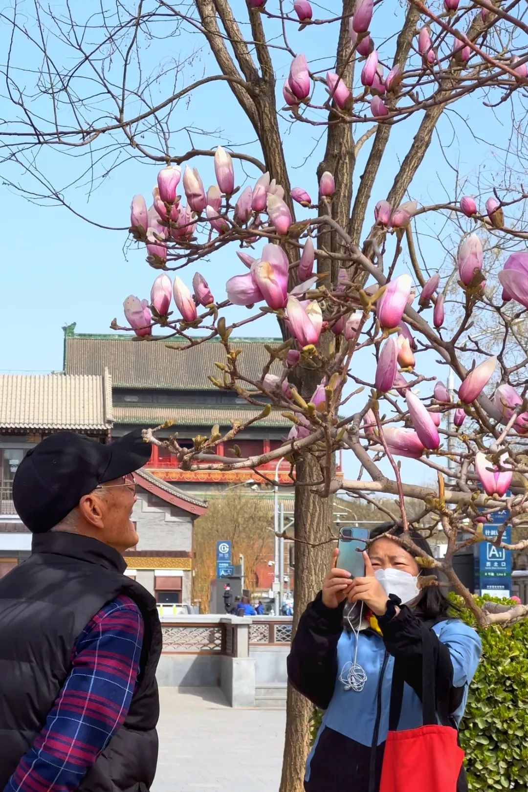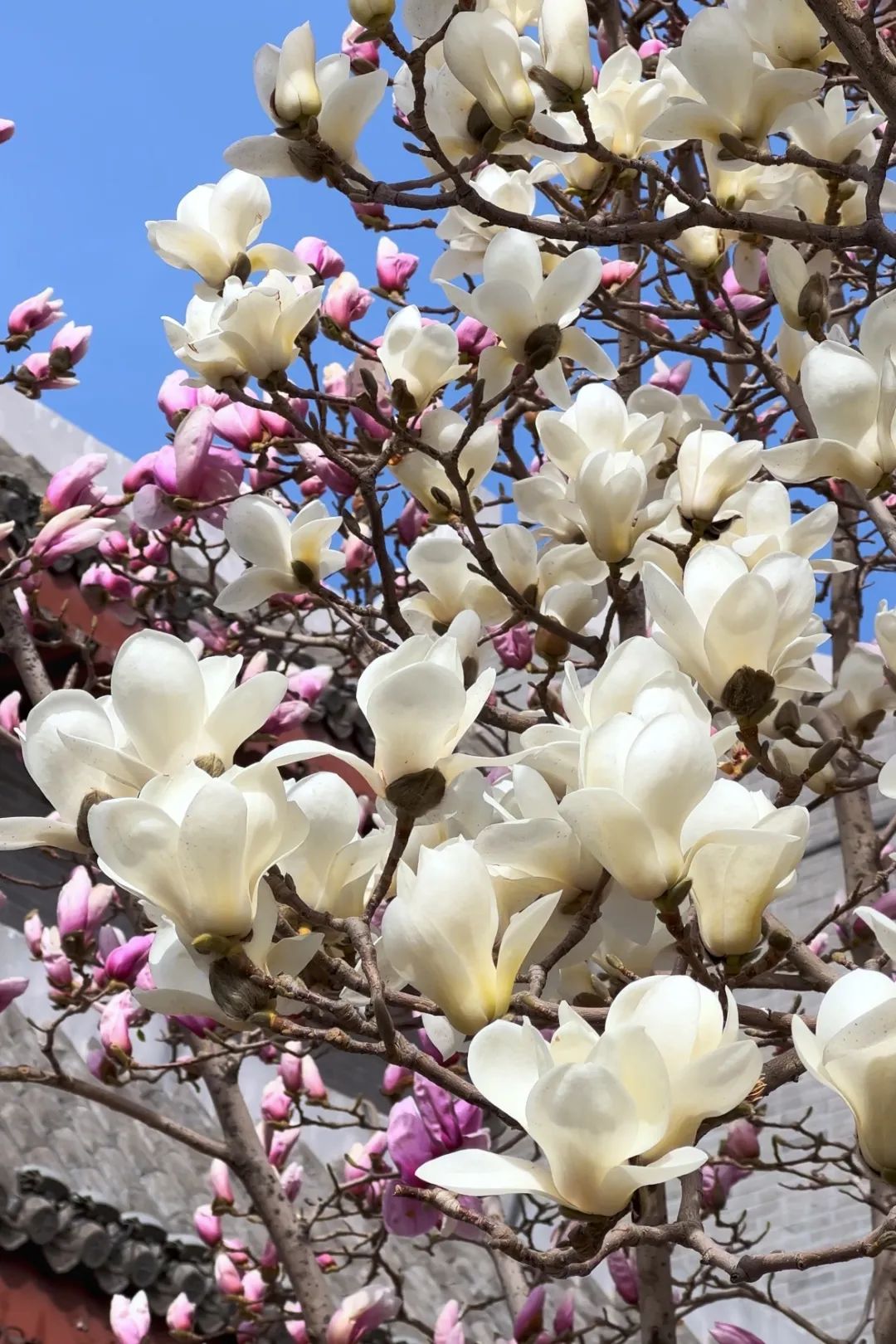 此时此刻,美丽的玉兰花正装饰着西城的大街小巷,或映衬着红墙,或点缀着街区,又或在公园里竞相开放,惊艳了整个古都。