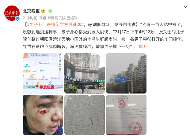 接到求助,北京日报(ID:Beijing_Daily)、北京晚报(ID:wxbjwb)第一时间通过微博、微信等平台发布了寻找目击者的报道。