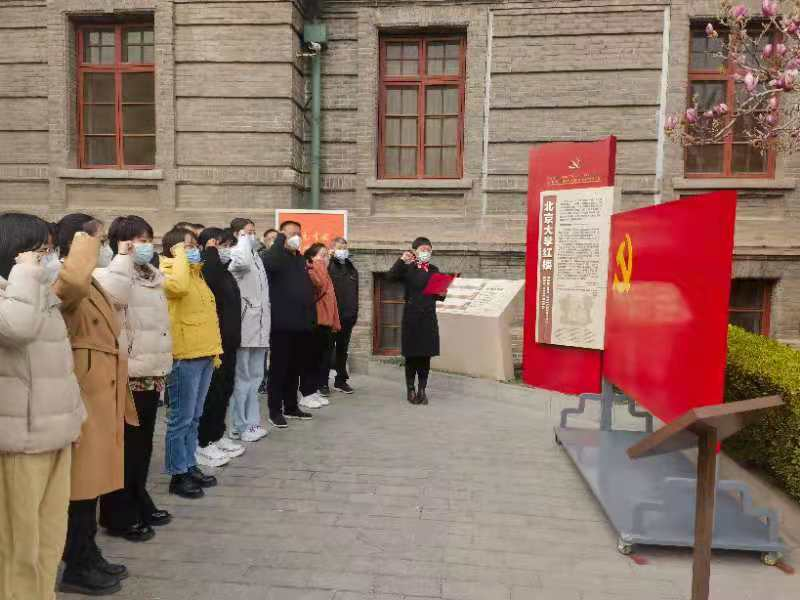 支部党员参观北大红楼,在党旗下重温入党誓词。
