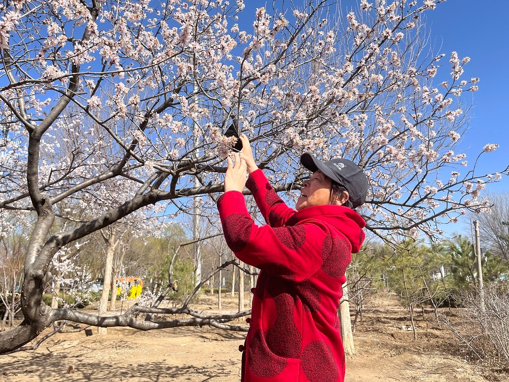 官牛坊城市森林公园作为小汤山镇域内最大的森林公园,占地315亩,园区内的山杏、山桃率先绽放,含苞待放的连翘、细枝嫩芽的垂柳,轻易就能将春景纳入镜头。居住在附近的村民卢晶回家沿途看到美景,内心不免激动,特意放慢脚步,沿着甬道沐浴春光:“我们家就住在这儿附近,现在春花开了,能欣赏到春景,心情特别愉悦。”