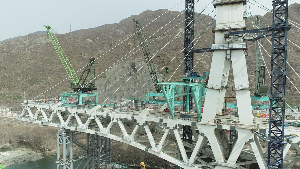截至目前,安家庄特大桥已完成左幅钢桁梁拼装212米,右幅钢桁梁拼装114米,斜拉索挂索张拉16根。