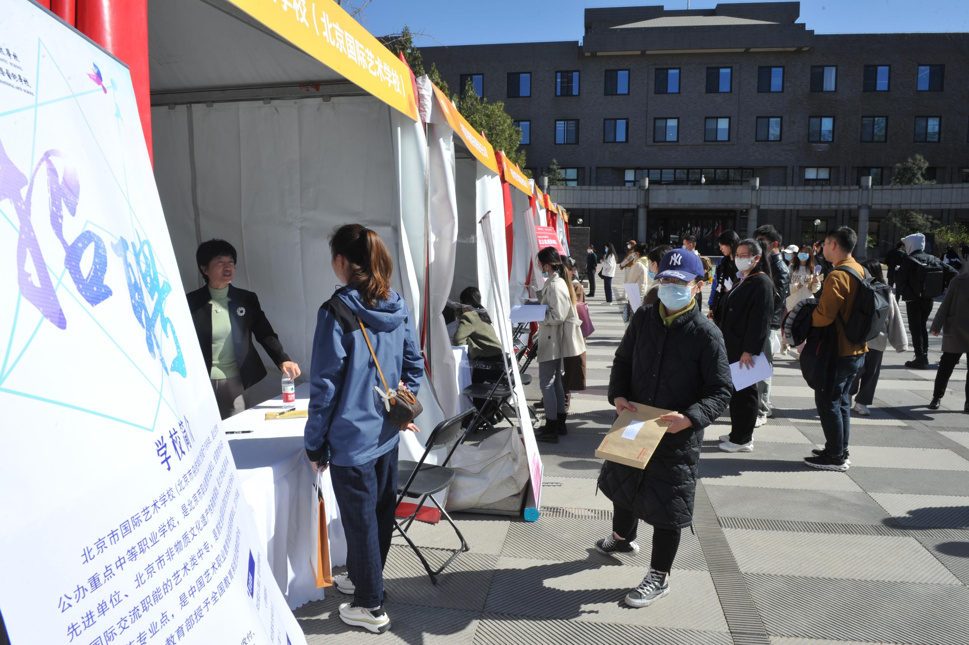 由于行业的对口性很强,学习美术、音乐、戏剧等专业的学生都能找到相应的岗位,所以这场招聘会受到毕业生们的强烈关注。虽然会场开在央美校内,其他高校也纷纷用大巴车将学生送来参会。