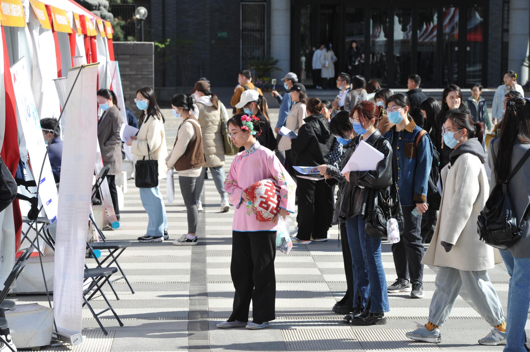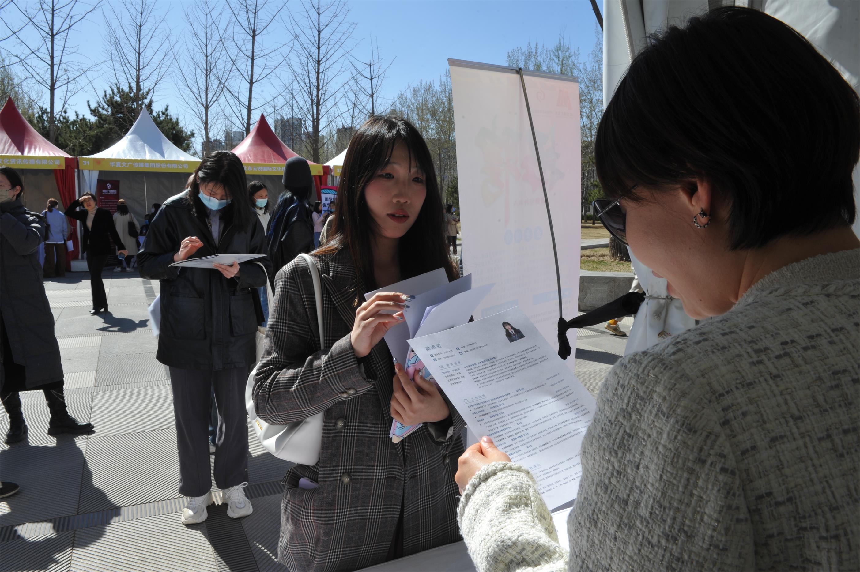这是一场很特别的招聘会。招聘会现场,既有穿戴着戏服的招聘单位人员,也有穿着戏服来凑热闹的学生。3月27日,“2023年服务北京全国文化中心建设首场文化专场招聘会”在中央美术学院举行。北京6大文化集团40余家企业提供就业岗位300余个,既有大提琴、贝斯、作曲、演员、指挥等专业岗位,也有文案策划、项目策划等综合性岗位。