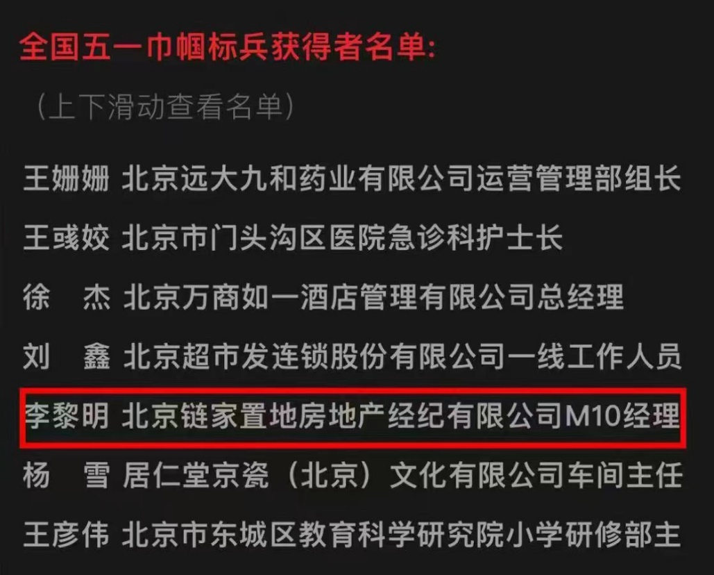 一名普普通通的房产经纪人能够荣获全国“五一巾帼标兵”,这不仅是对李黎明个人的褒奖,也是对房产经纪行业的认同。在链家,有很多像李黎明这样的新时代房产经纪人,他们爱岗敬业、乐于助人,致力于推动行业正循环,在为社会、为社区、为身边的人做着力所能及之事。