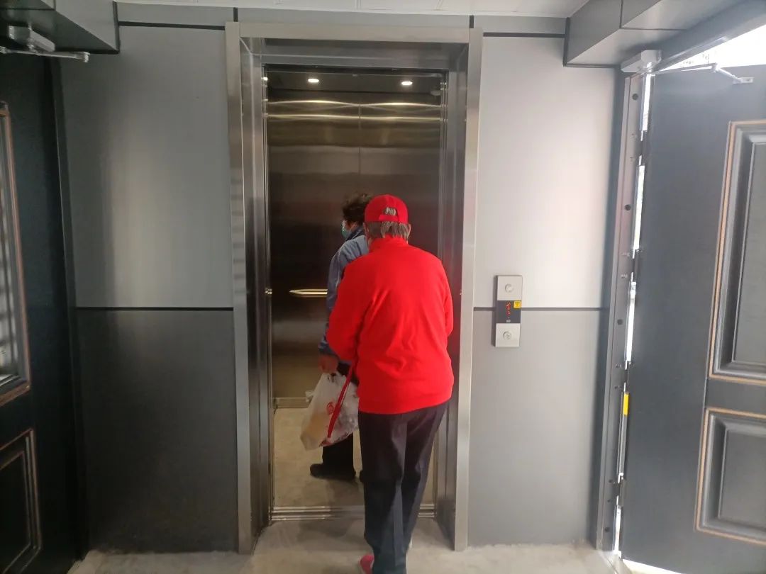 “我家住五楼,每次都吭哧吭哧地爬楼,现在有了电梯,真是太方便了。”