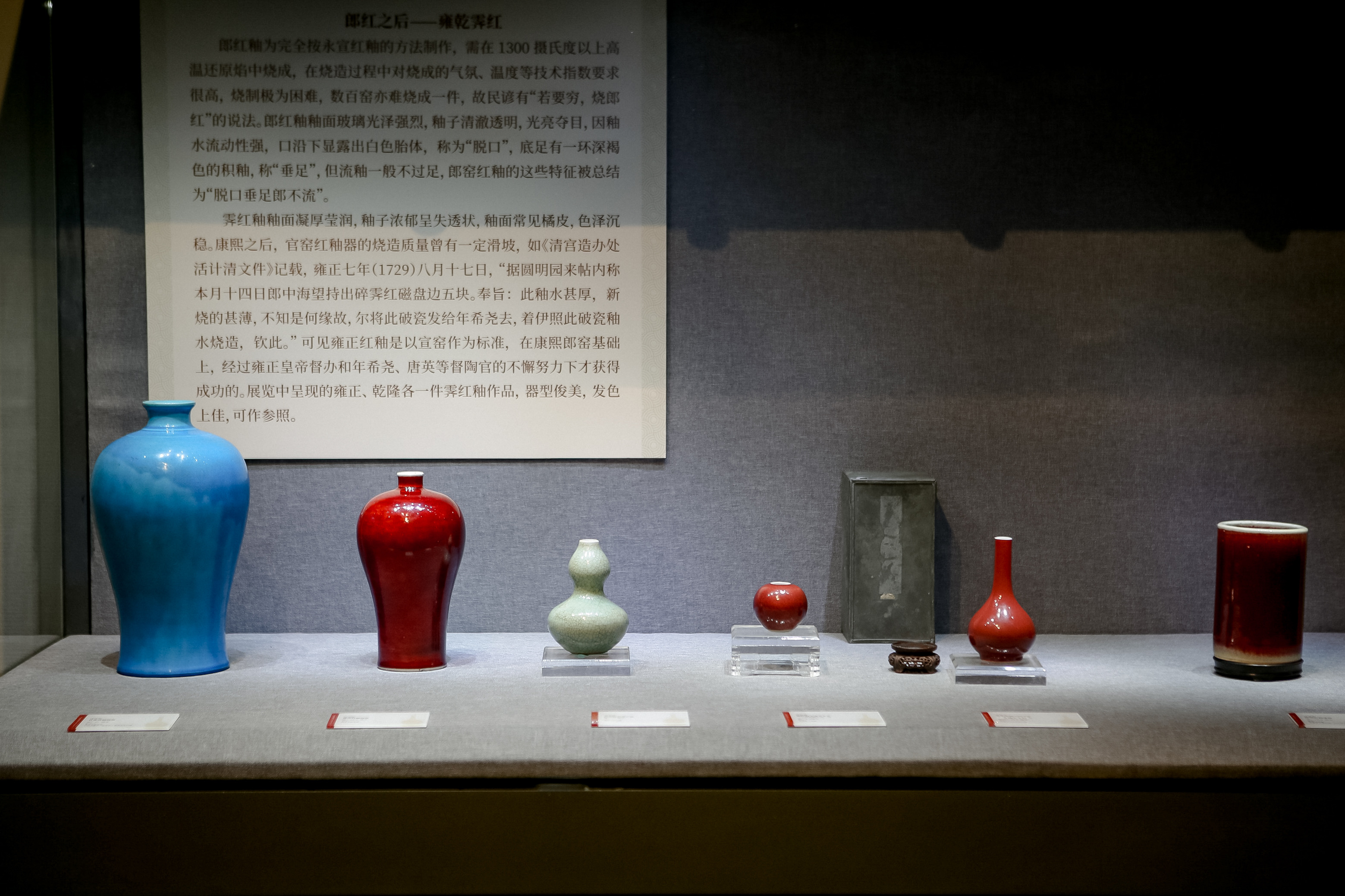 展览除了着重展出一组最具代表性的郎窑仿宣德红釉器以外,还研究与梳理了郎窑瓷仿明代甜白、仿宝石蓝、仿翠青、仿青花、仿斗彩等鲜为人知的品种。在进一步呈现郎窑的真实面貌之余,也体现出郎窑瓷背后的郎廷极的艺术追求与审美情趣。