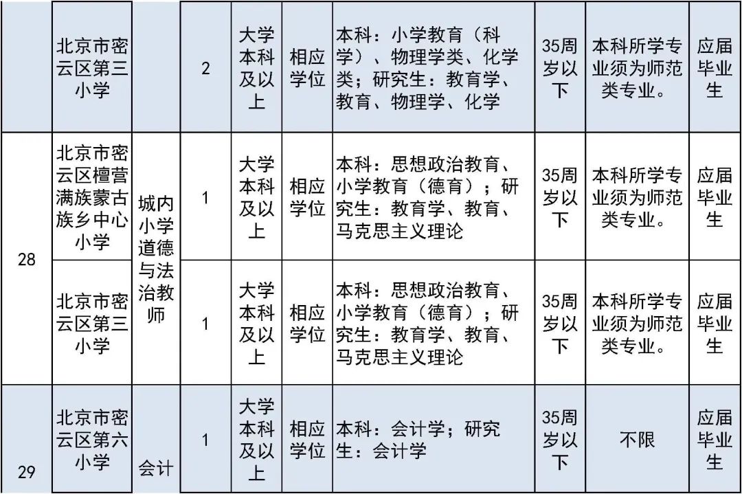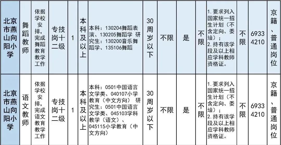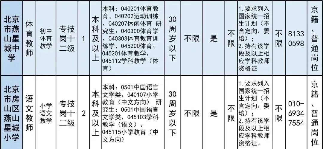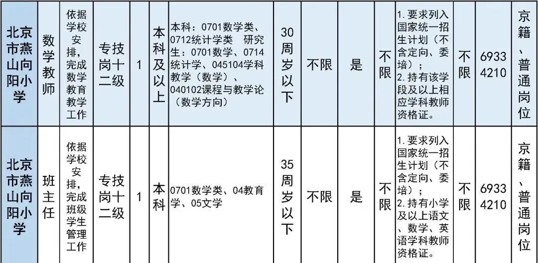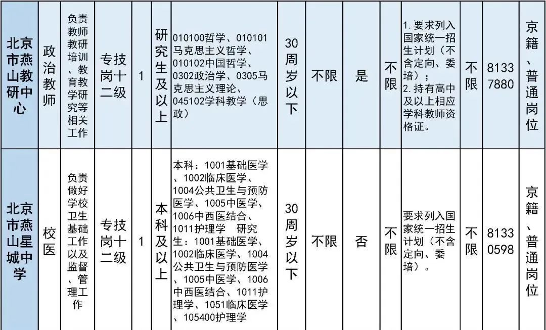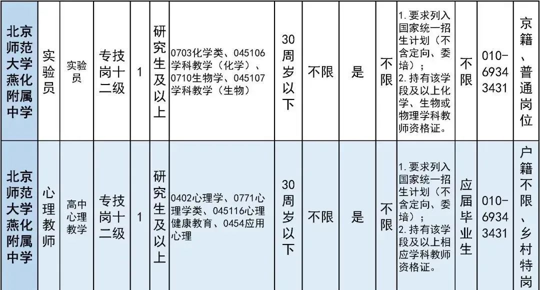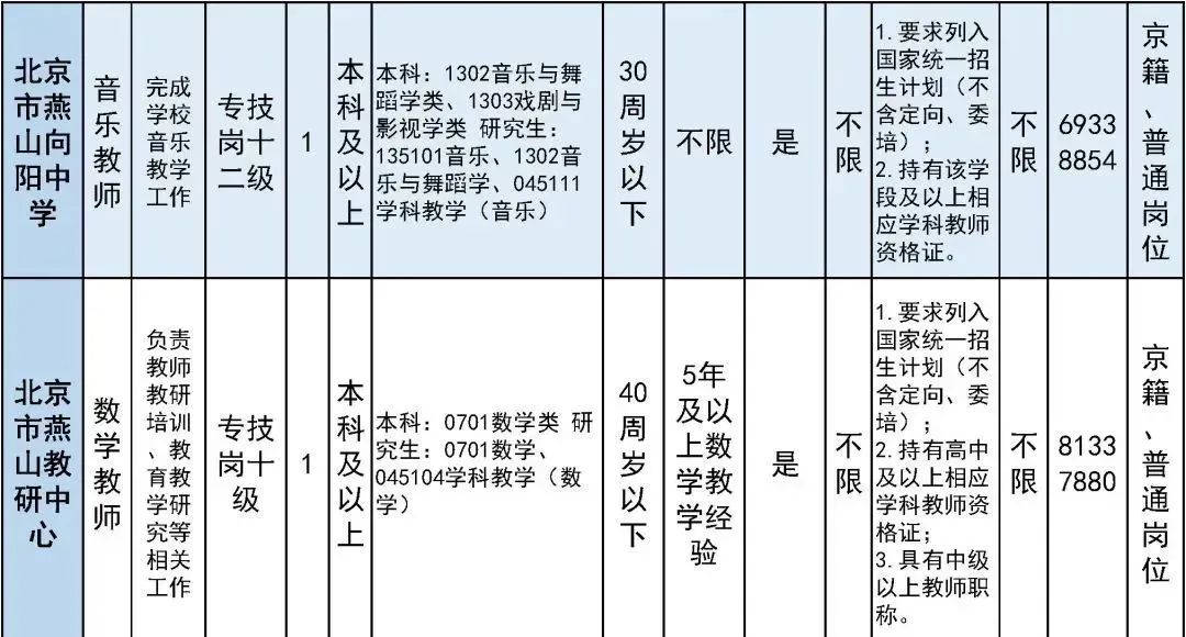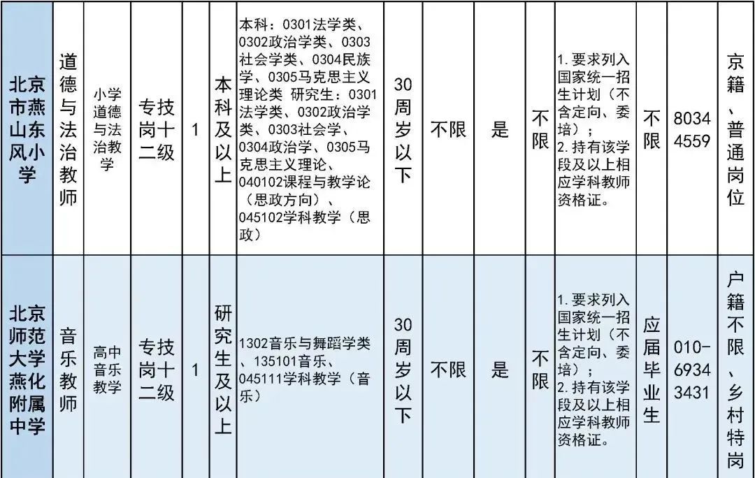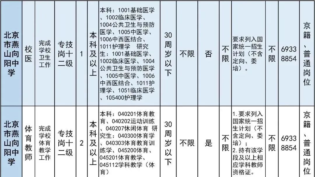 招聘信息来源:首都教育、北京市人力资源和社会保障局网站