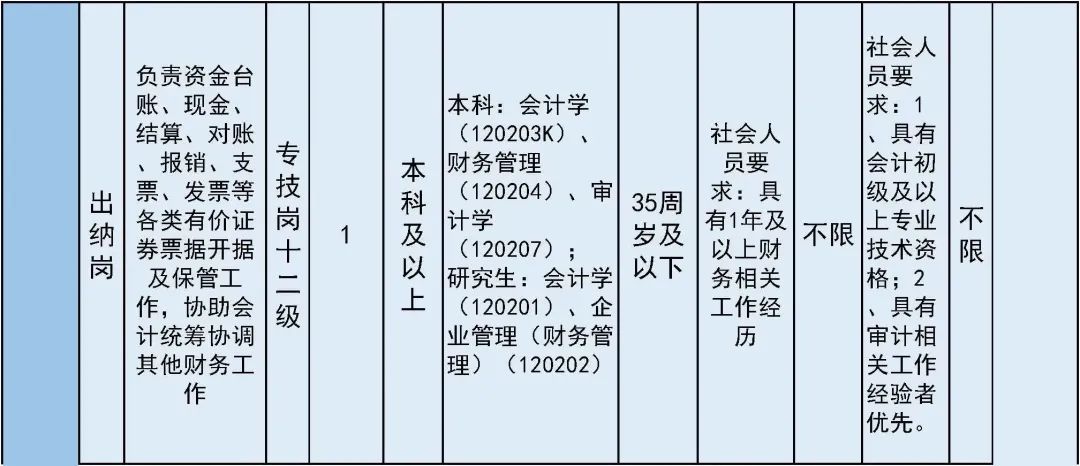 (四)社会人员报考教师岗位需具备相应的教师资格证书,本科及以上学历;会计、出纳、校医岗位需具备本科及以上学历。校医岗位需具备相应的从业(执业)资格、相应的专业技术职称;会计、出纳等专业技术岗位需具备相应的专业技术职称。管理岗位需具备相应专业的本科及以上学历。