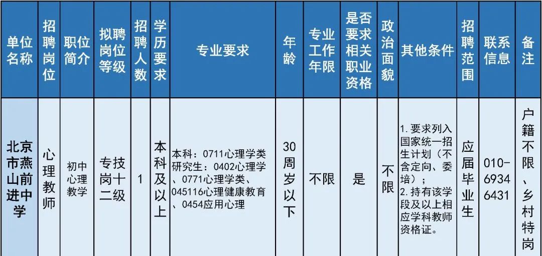 所有岗位具体报名条件详见《西城区教委2023年事业单位公开招聘工作人员(第一批)需求表》(以下简称《需求表》)。