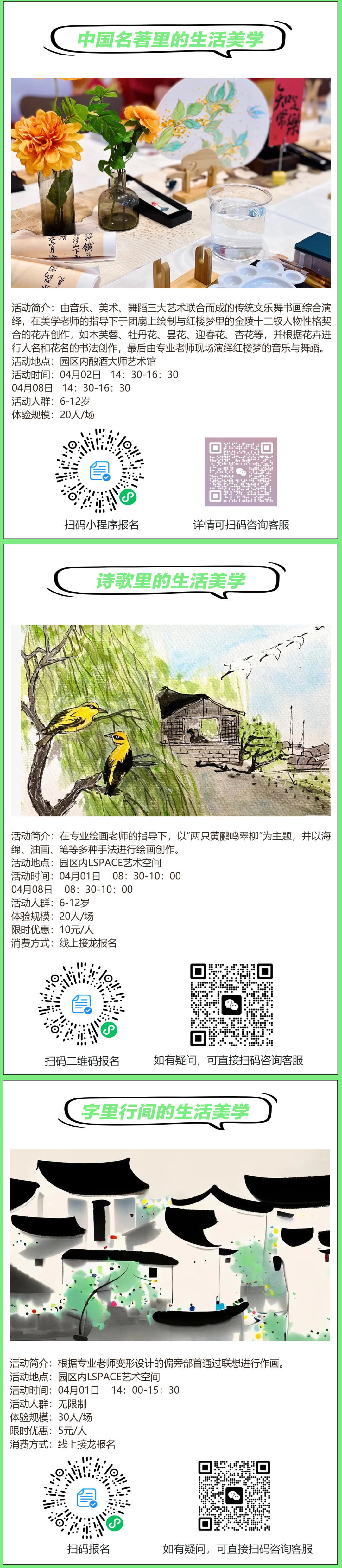 可自由入园闲逛、体验以下春日游园项目