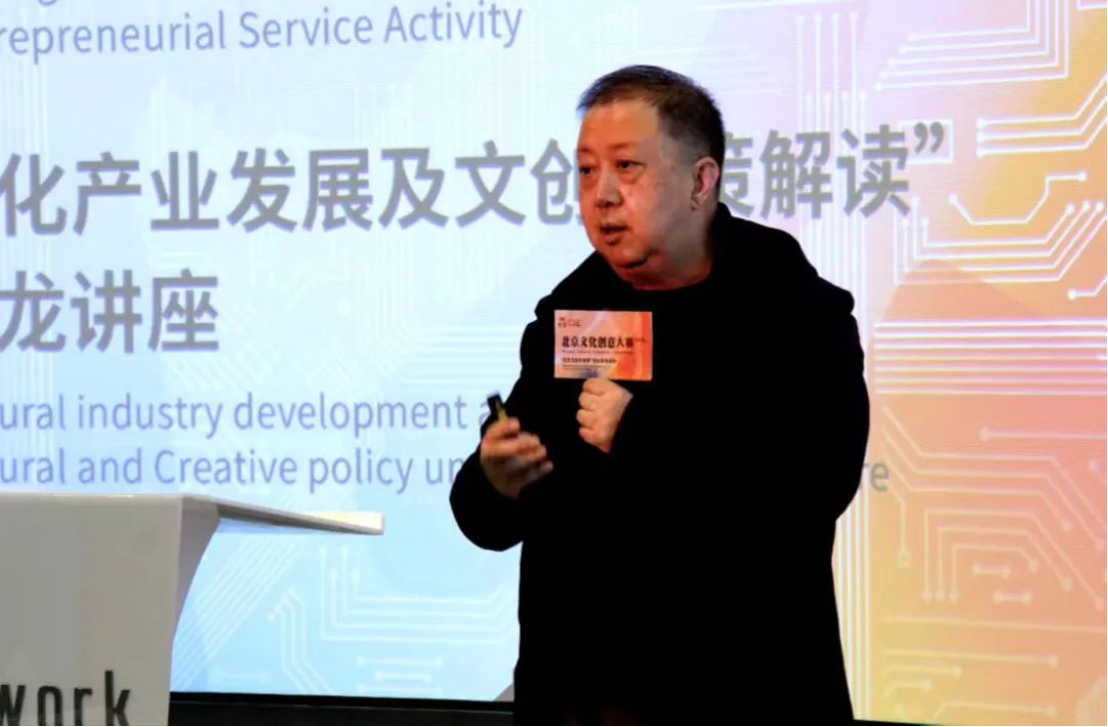 在C work圆形报告厅举行的“文化产业发展及文创政策解读”沙龙活动中,京文创研究院院长奚大龙,以高效对接政策、获得“通关密码”为主题,基于北京市文化经济政策特质,精准定位企业对接政策的痛点与难点,深度剖析政策实际作用与逻辑内核,就企业如何有效享受政策扶持等系列策略为参赛选手和文创企业代表做了专业讲解。