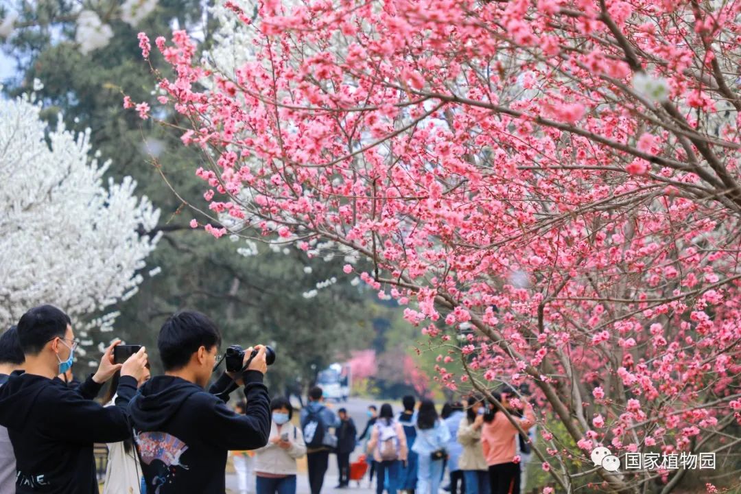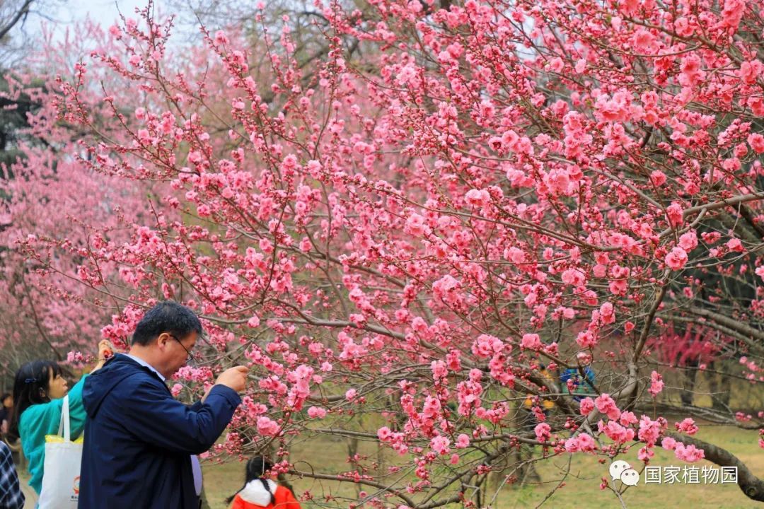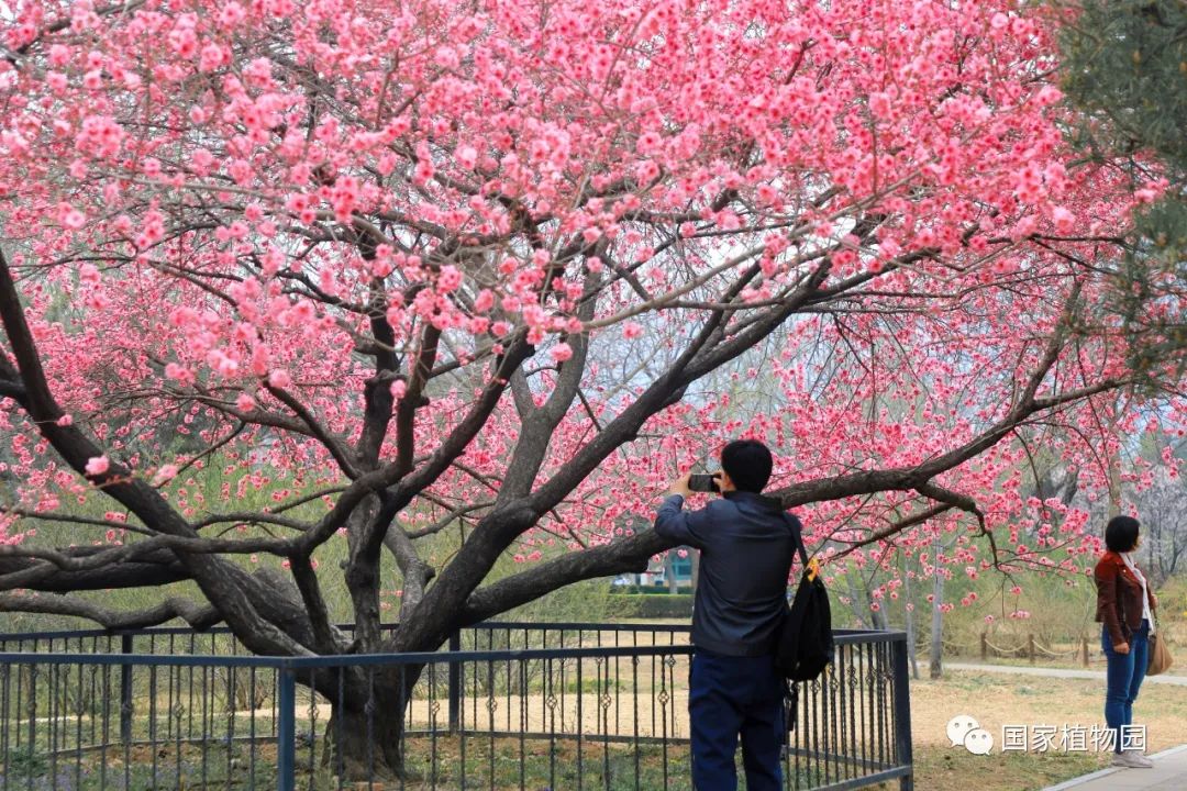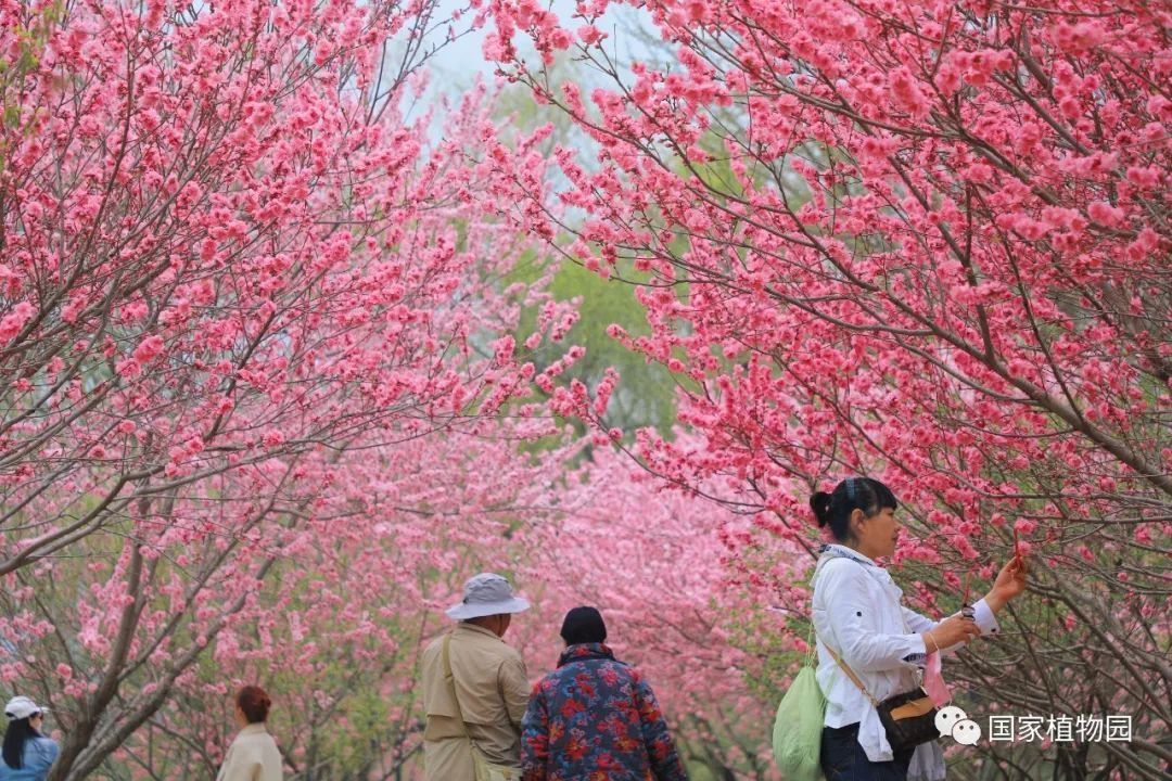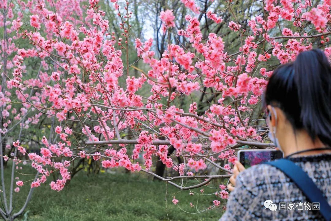 人间最美四月天,春意正浓时,国家植物园北园的桃花久负盛名,正逢被誉为桃花花王的‘品霞’以及桃花公主的‘品虹’在园内盛放,繁密的花朵,艳丽的色彩吸引众多游客的目光。