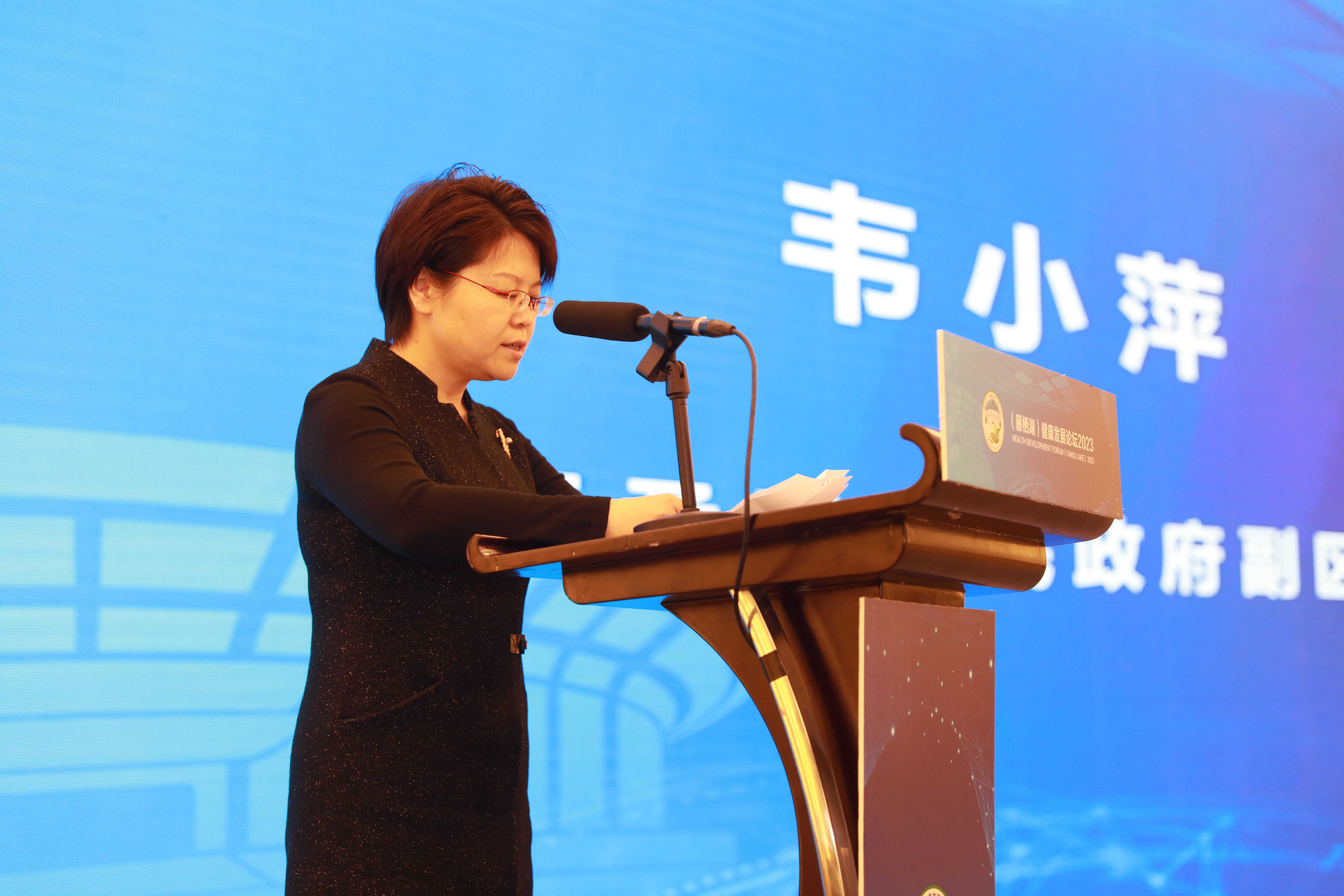 北京市怀柔区人民政府副区长韦小萍对各界人士的到来表示衷心的感谢,她提到(雁栖湖)健康发展论坛作为全国具有影响力的健康论坛,以雁栖湖为起点,以发挥雁阵效应为指向,以助推健康中国战略为核心,倾力为地方政府、为企业发展、更是为老百姓服务,共建共帮互促,各方协同的联合体,为怀柔增加了一道靓丽的名片并树立了健康行业的标杆。