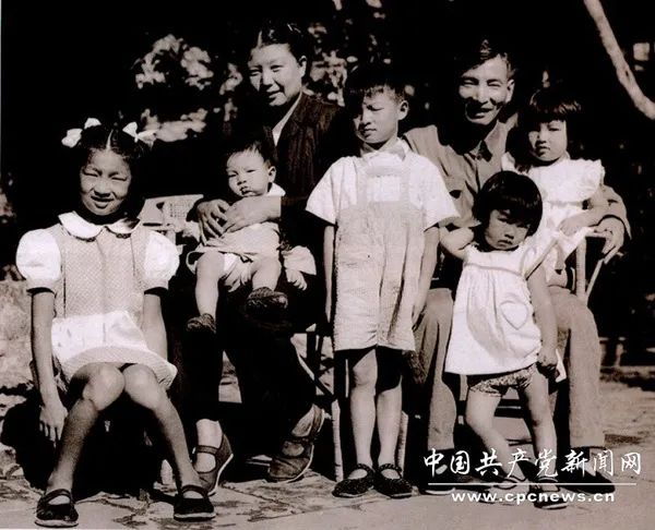 陈云与家人合影(左起:陈伟力、陈方、于诺木、陈元、陈云、陈伟兰、陈伟华)